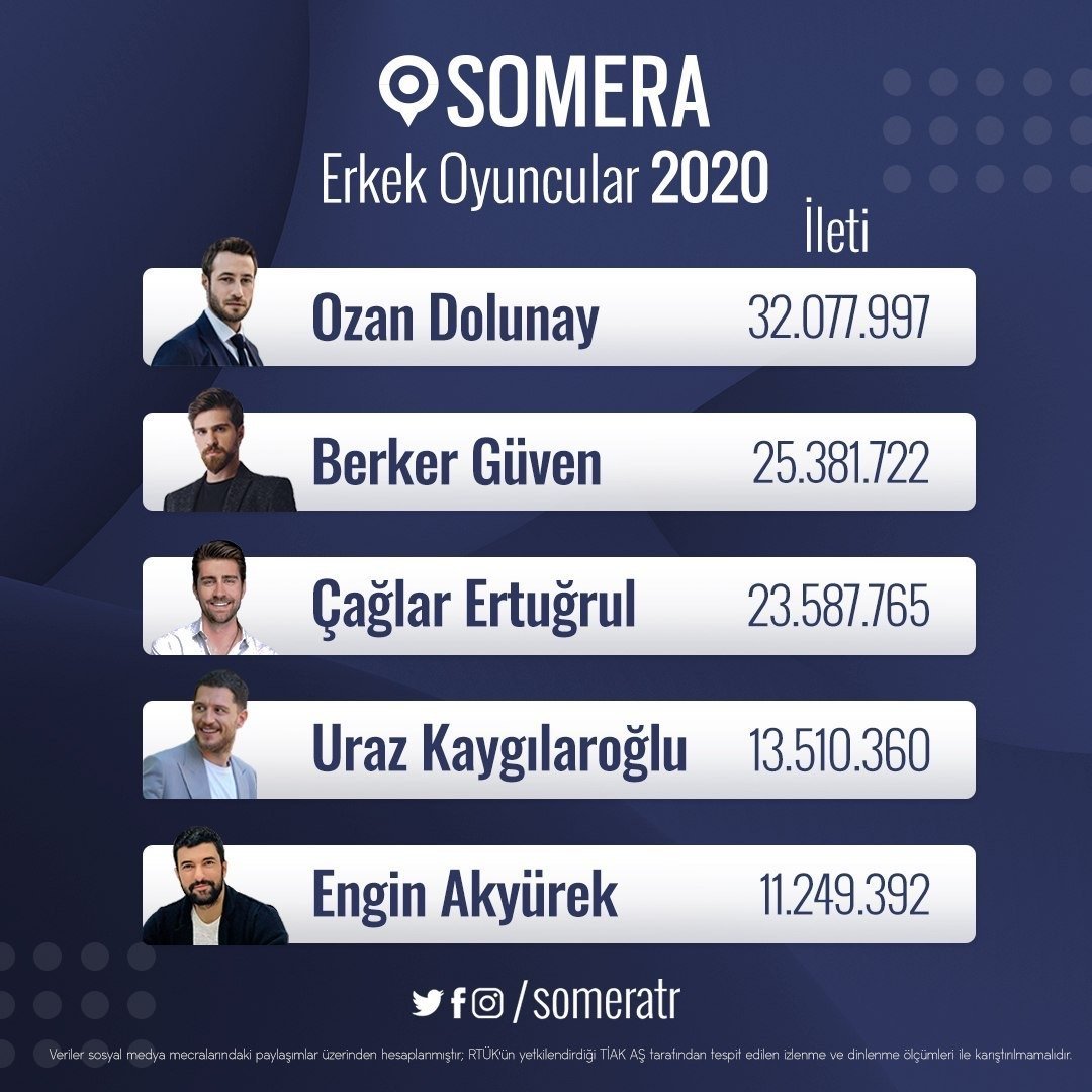 Според Сомера, най-популярните актриси и актьори за 2020 година са:
