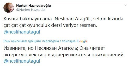 Генеральный директор Стамбульского Национального драматического театра об игре Неслихан;