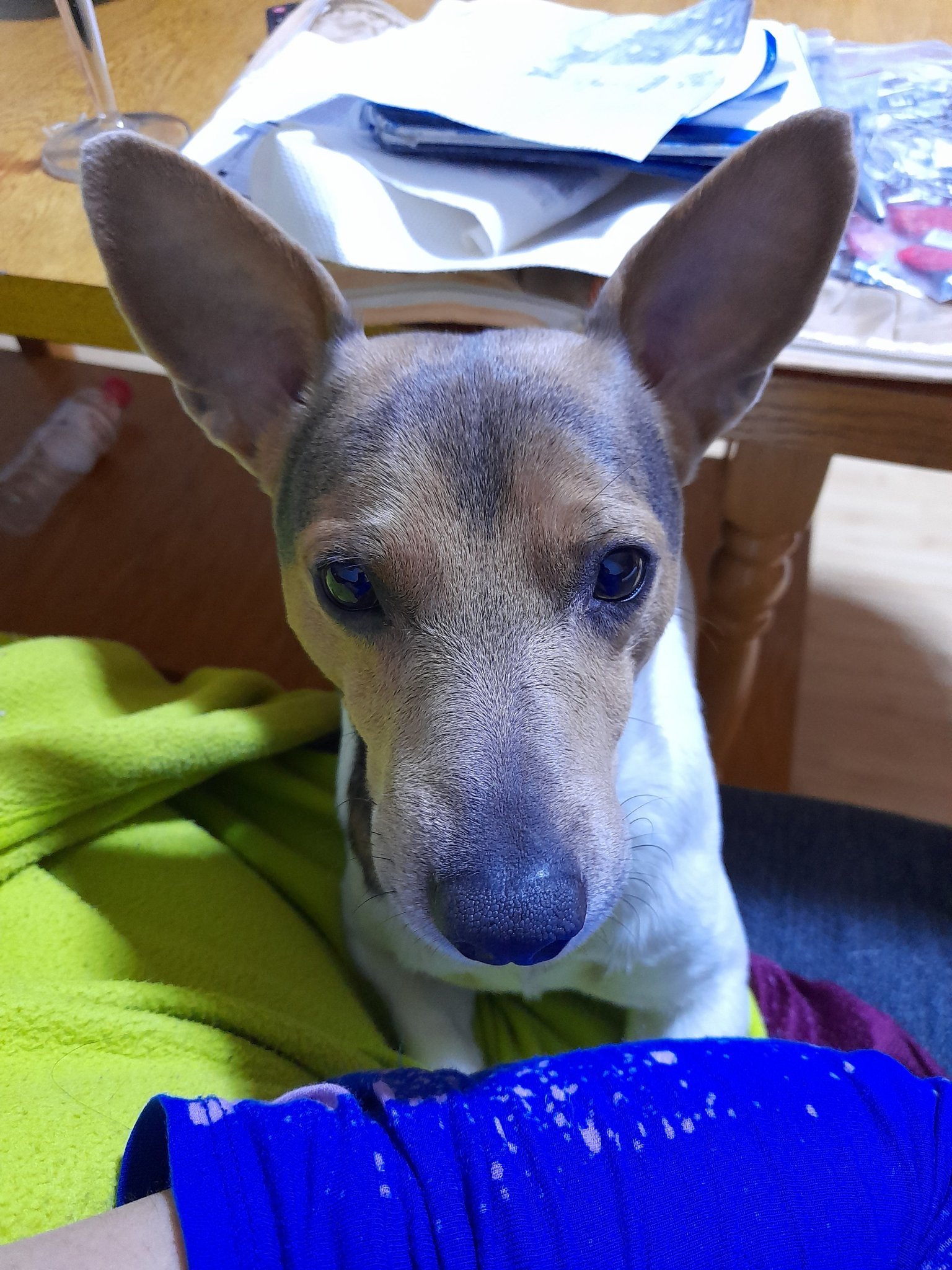 Саско май живна малко. Хапна малко. Поигра си с една играчка, помрънка за разходка, прояви интерес към сиренето, което ядяхме.