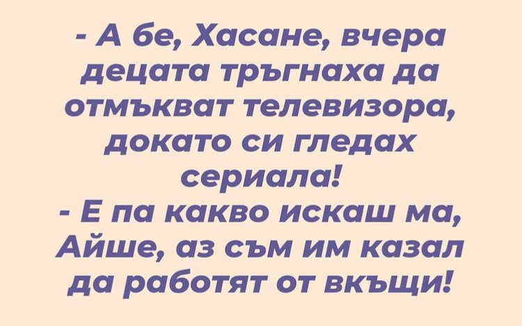 - Не ме интересува, бе!!! Децата ти ше плащат! Имаш ли син?
