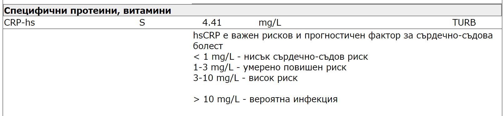 И моето HS CRP е високо, трябва да погледна точно колко беше и взимам антиоксиданти и омега.