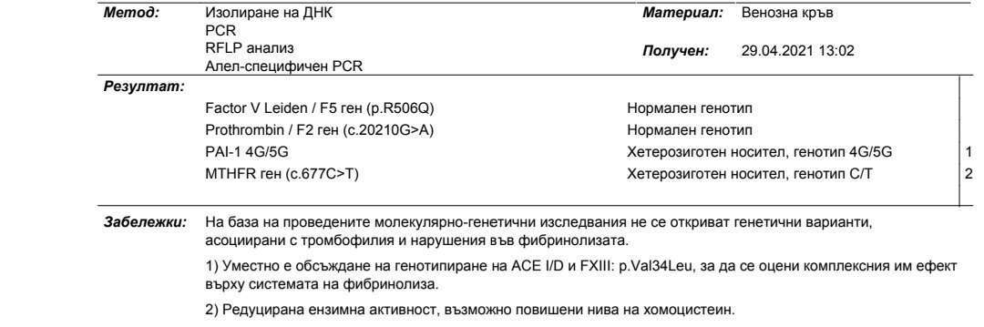 MTHFR ген (c.677C>T)Хетерозиготен носител, генотип С/Т