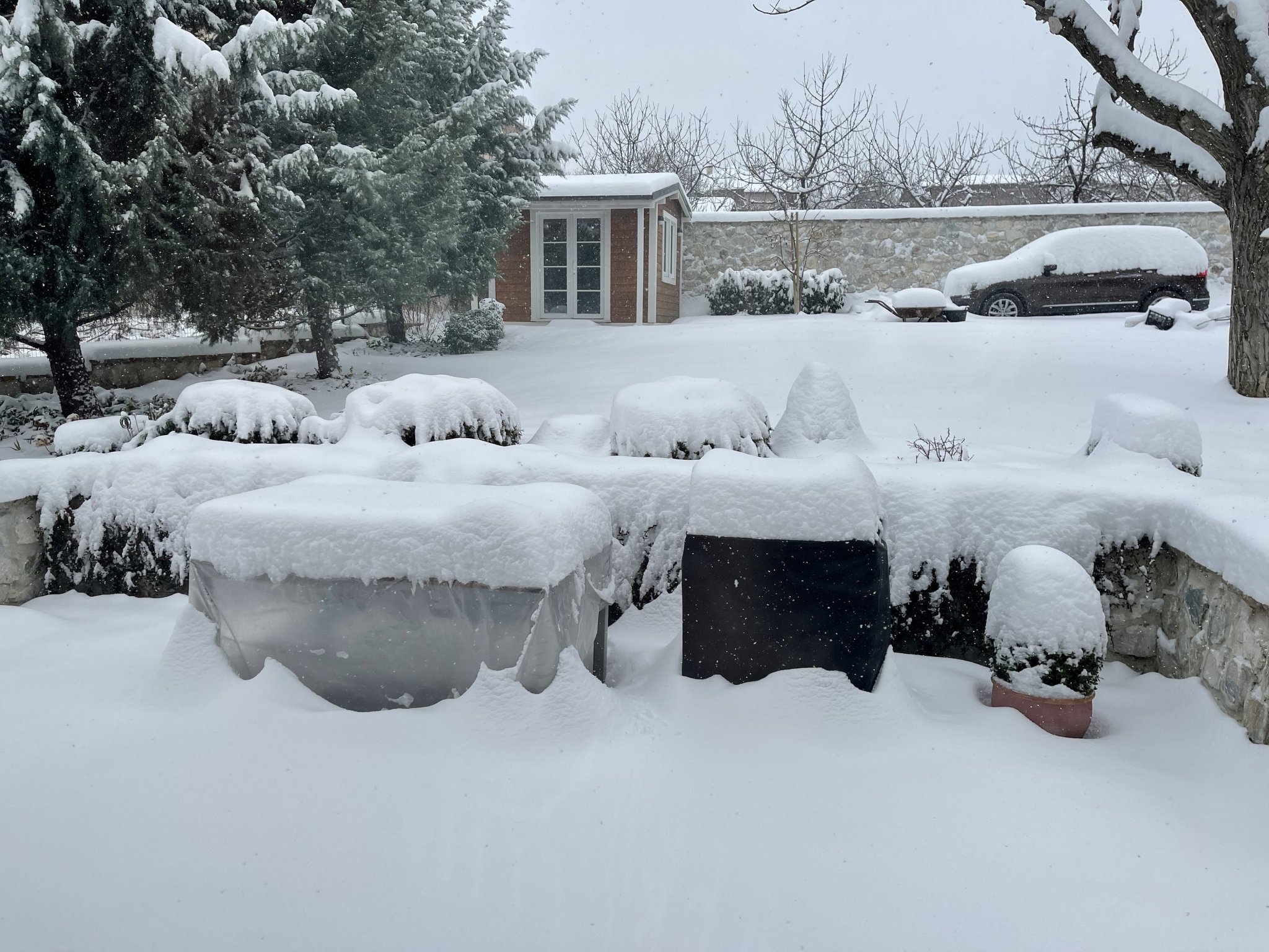 Шошо цял ден влиза и излиза, притичва в снега и обратно.