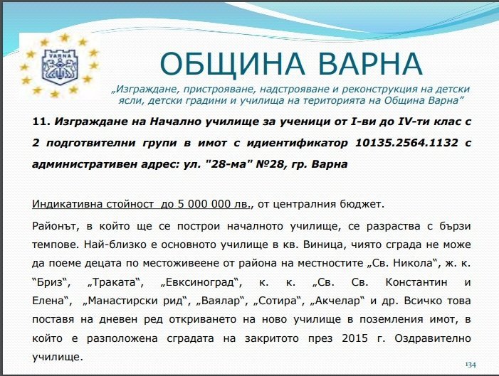 11. Изграждане на Начално училище за ученици от І-ви до ІV-ти клас с