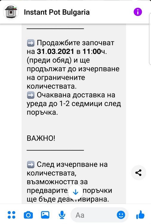 Здравейте, решила съм да сменям моята Olla с нов кукър. Спряла съм се на INSTANT POT DUO CRISP+AIR FRYER or NINJA FOODI MAX. Четох доста отзиви, но въпреки това все още не съм решила кой от двата да взема. Ако някой може да даде някой плюс или минус за някой от двата, ще съм задължена
