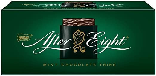пусни After eight в гугъл, за да си ги визуализираш. Иначе предимно се предлагат в едни малки, тъмно зелени, дълги кутийки и противно на очакванията, вътре са доста бройки.