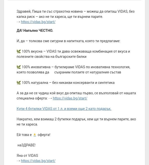 Днес в пощата имах тази реклама на соковете Видас