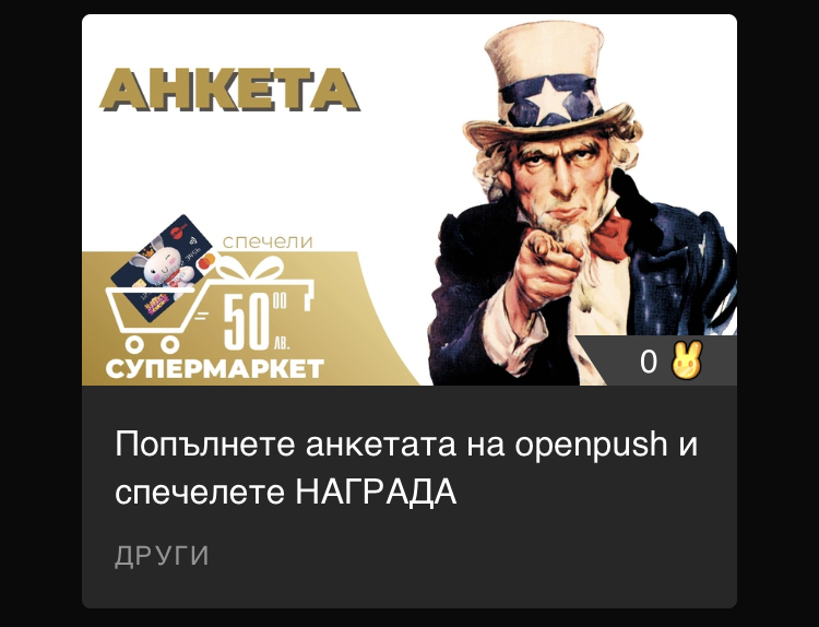 Това е анкетата от OpenPush https://partner.openpush.io/survey/ Само да видите въпросите, но НЕ я попълвайте от този линк, защото нищо няма да получите.