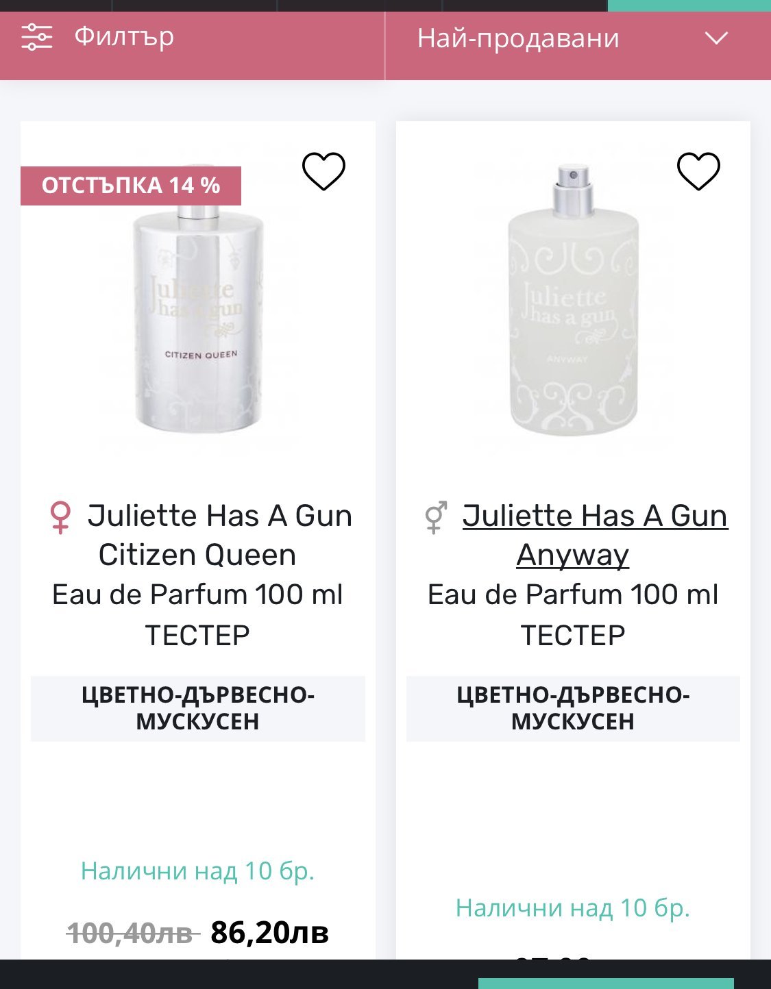 Продукт и тестери Juliette has a gun в Парфимо, цените започват от 86лв
