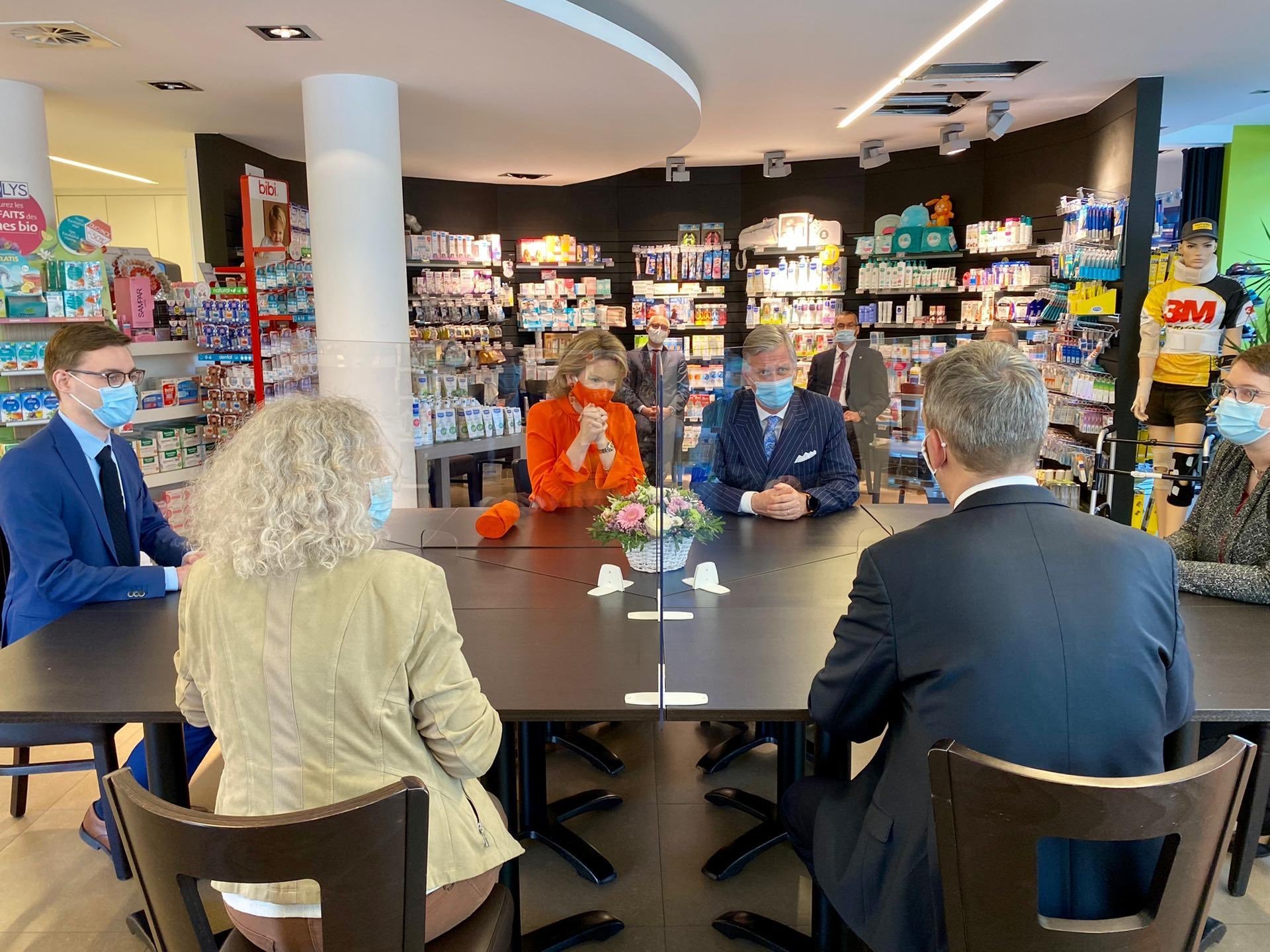 Матилде и Филип в аптека. Пише, че някой фармацевти ще бъдат обучени да ваксинират