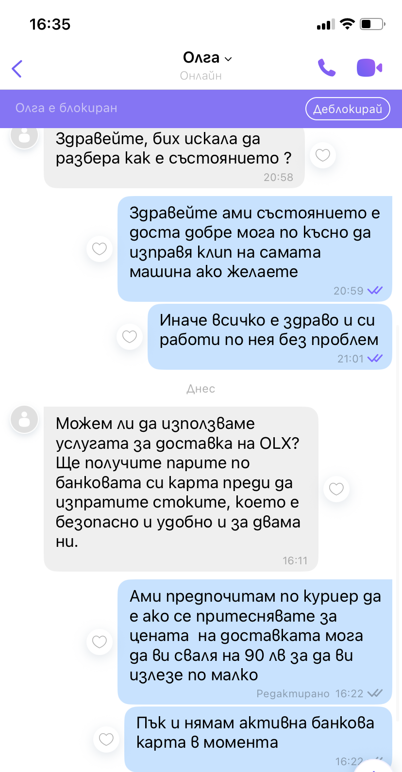 Схемата за измама включва комуникация чрез WhatsApp или Viber, където измамниците убеждават продавачите да споделят данните на своята банкова карта под претекст за плащане. След това те се опитват да извършват плащания през подозрителни уебсайтове с получените данни. Освен това, те настоятелно предлагат доставка чрез OLX, което не е практика на платформата.