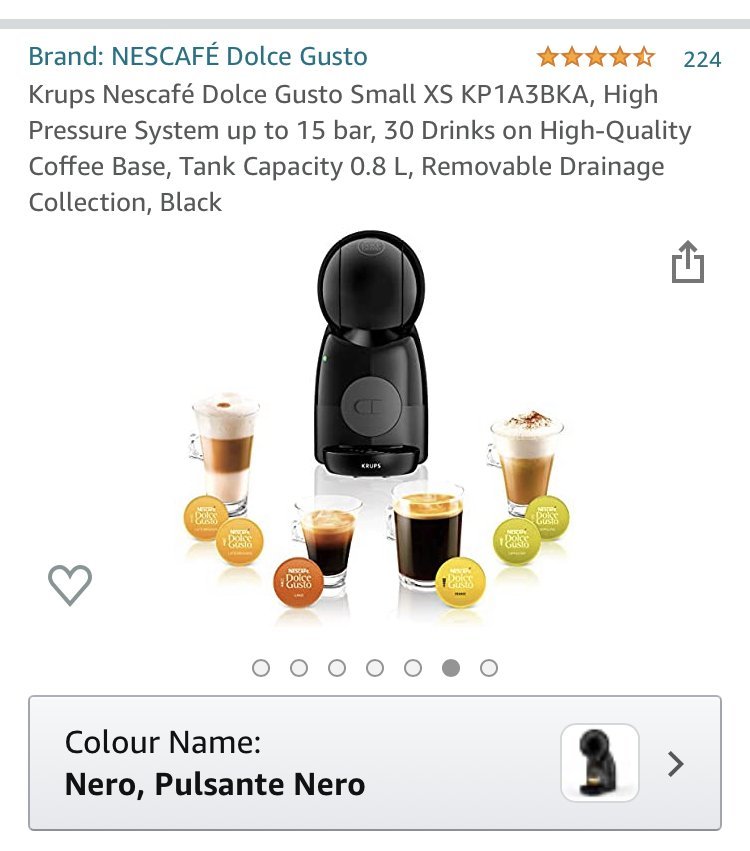 Става въпрос, че с тази машина могат да се консумират над 30 различни вида напитки Долче густо - "високо качествени на основата на кафе". Снимката е само информативна, с какви капсули може да се ползва машината.