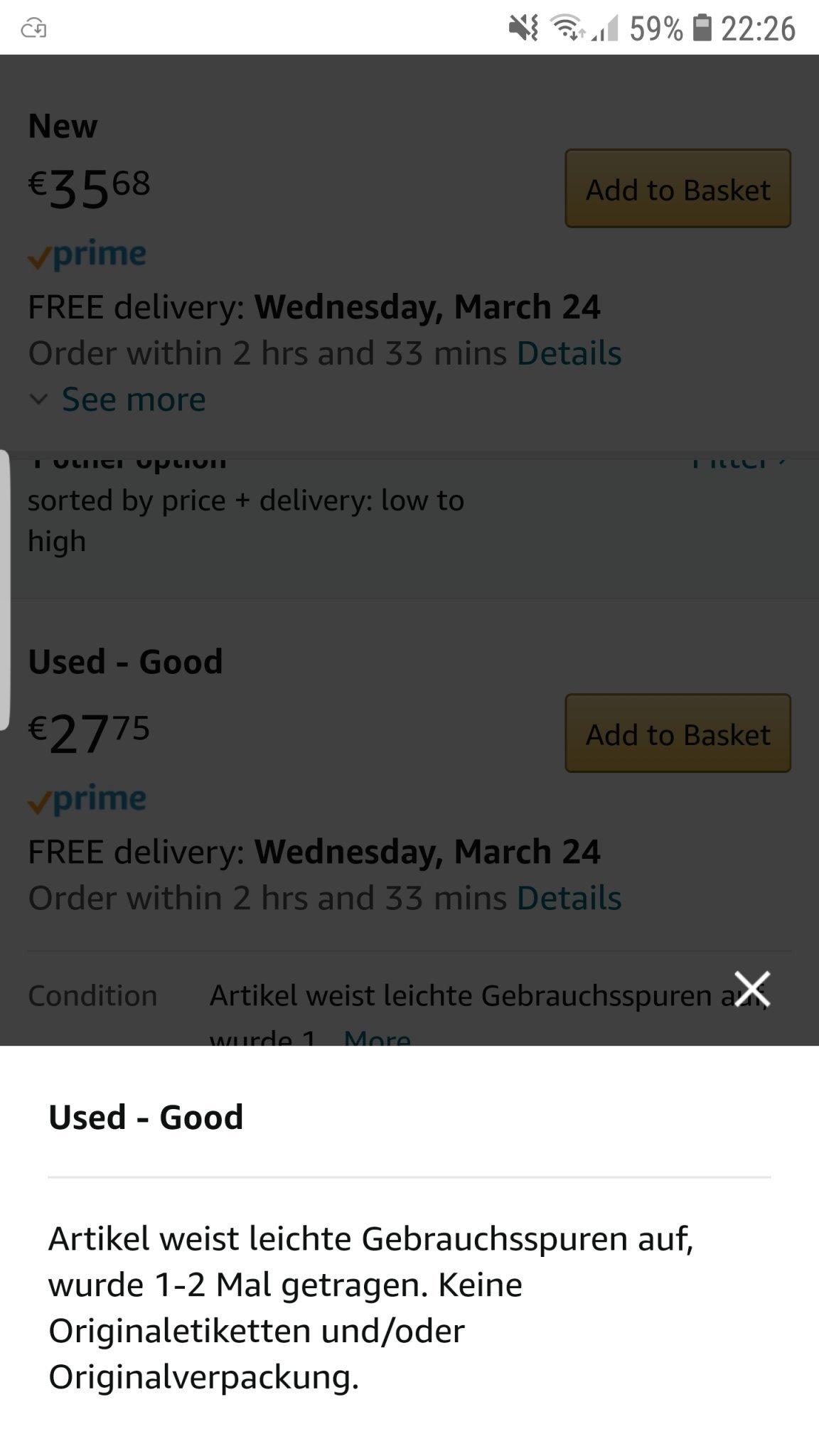 Дали наистина е носено? Не разбирам немски и превеждам през преводач. Не че е голама разликата с ново, но като сложиш и 30%...