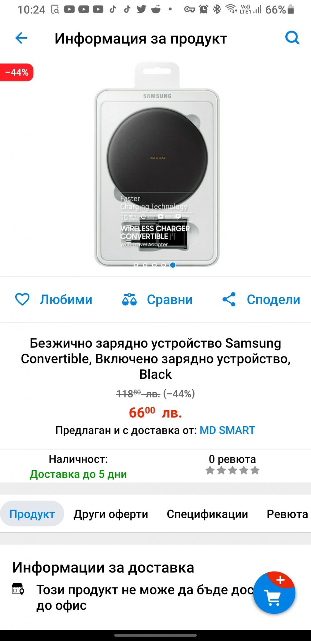 Бяха пуснали промоция на безжично зарядно с включен адаптер за 66 лв и си помислих, че е добра оферта. Това което пристигна беше само зарядното без адаптера и то в кутия която си личеше, че е изстрадала доста. След като инспектирах уреда се убедих, че това ако не друго, то е втора ръка.
