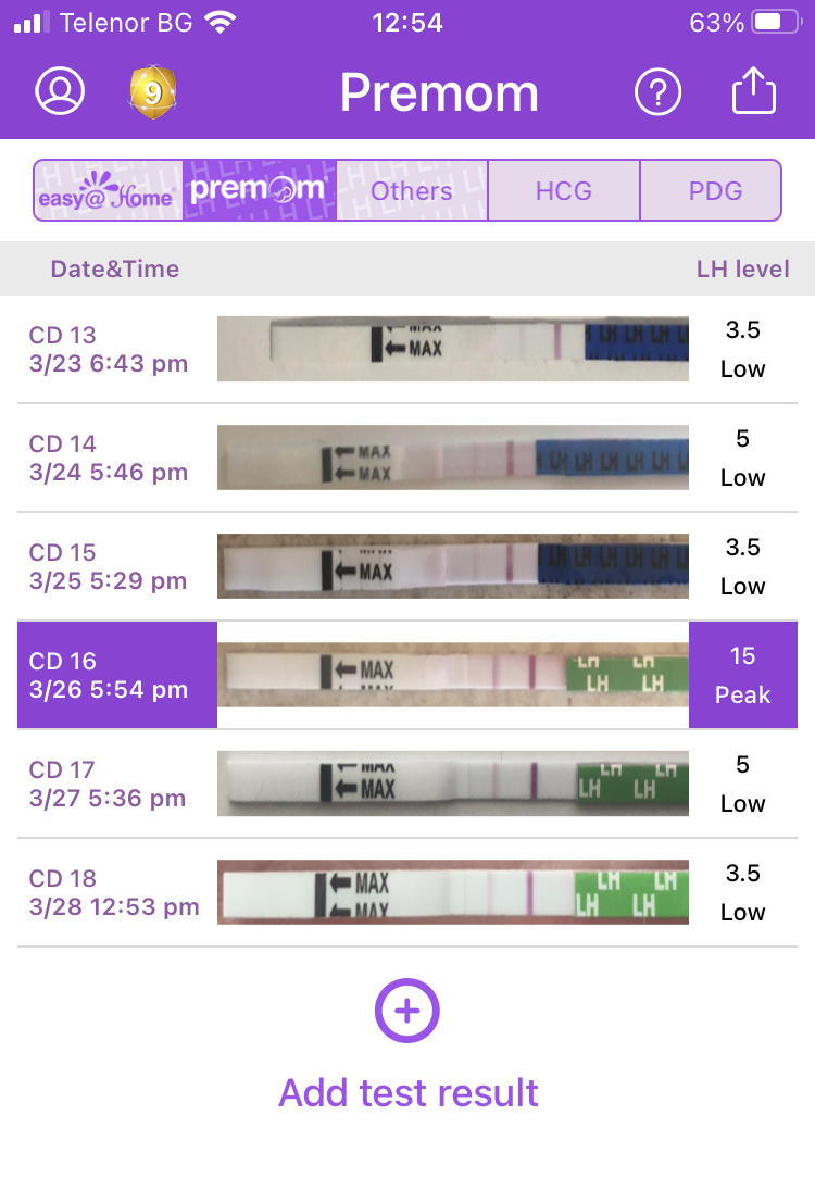 Здравейте момичета!За първи път пиша тук ,тъй като за първи месец правя тестове за овулация,обаче ми се струва че нещо не се справям както трябва🤔Историята ми е :от година и половина правим опити безуспешно,ходих на всякакви прегледи и изследвания-ЦС,спермограми и т.н.-Всичко е ОК,имам две инсеминации-неуспешни/правени са на 14-тия ден от МЦ на не спукан фоликул/та понеже вече не знам какво не ми е наред,реших че може би не нацелваме нещо тази овулация,понеже все наблягаме на 12;13;14-ти ден,а док ми забрани да го мисля,да правя тестове и т.н./каза всичко е ок,ще стане/да ама..аз реших да взема да пробвам и да видя какво се случва .И така..МЦ ми е 30-33дни,от 9тия ден започнах да се тествам с Lady test и все  много бледи втори чертички/от 13-тия ден си свалих приложението Premom и започнах да ги снимам/на 16-тия ден си взех Clear ovu test и на него се показа доста по-плътна втора чертичка,но отново недостатъчно/а в приложението Premom,ми го отчита като ПИК и съответно овулация,като същия ден имах болки в яйчниците и ЦС/и от там нататъка чертичката започна да избледнява.Въпроса ми е,дали е възможно с тези Lady Test да съм изтървала да засека овулацията/понеже нещо не ми се струват надеждни и да е било предния ден/или просто не съм имала овулация?