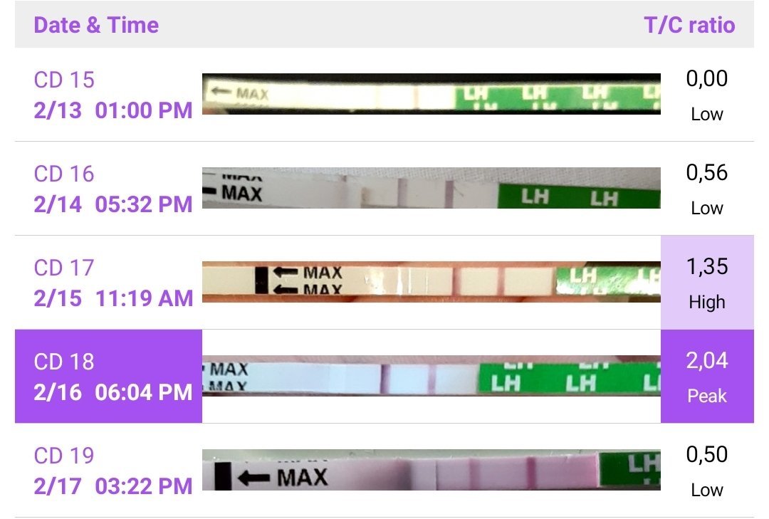 Взех първо Oview ,но не бях доволна, а и не знаех  как да приема тези стойности,за това като свършиха взех clear.От тях съм много доволна.Правила съм февруари. Тогава всичко приключи за 4 дни.На 16 и 17 ден се повишиха стойностите и на 18 беше пикът (прилагам снимка).Днес е 19 ден и не е дори повишена стойността, но има надежда. Относно времето,правя по-рано и следобед т.е. 2 пъти.