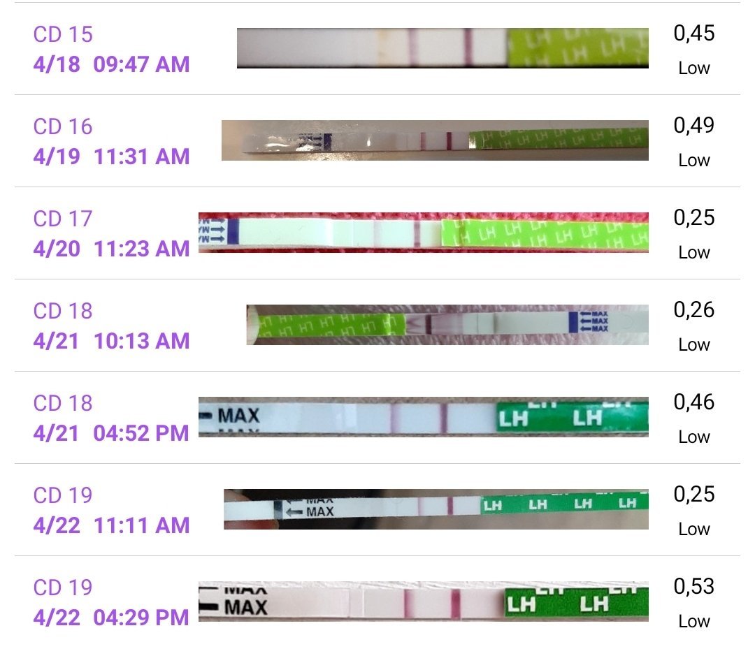 Приложението ми изчисли О теста днес със стойност 0,11. Миналия месец от такава стойност минаха 3-4 дни и настана пик. тъй като са ми останали още 2 теста, а честно казано не ми се купуват за сега нови, утре например няма смисъл да се тествам, нали? На предното тестване градираше 0,12, 0,52, 0,76, 0,88 пик, предполагам така е всеки месец като съотношение? И някой има ли идея, как при едни пикът е под 1 като при мен, а при други гледам над 2 имат стойности?