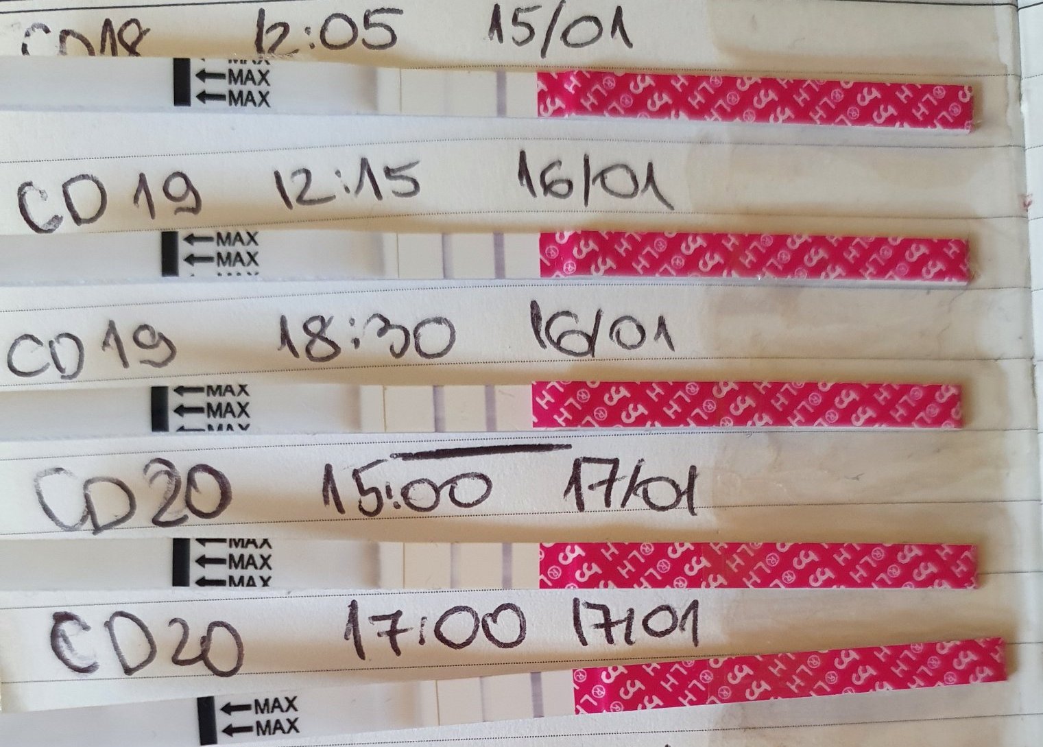 Тестовете са правени на 19, 20 и 21 ден от последния ми цикъл.