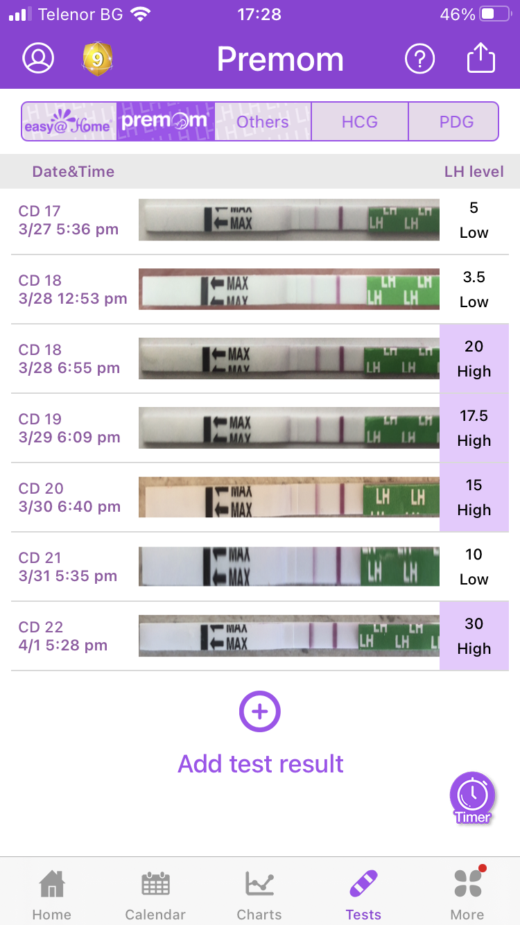 Момичета днес ми е последен ден от менструацията и не знам защо реших да си направя тест и бихте ли коментирали резултата, тъй като за първи път си пиша. Ако нямате против може ли и повече разяснение за приложението premom, снимах и там но нищо не разбрах.