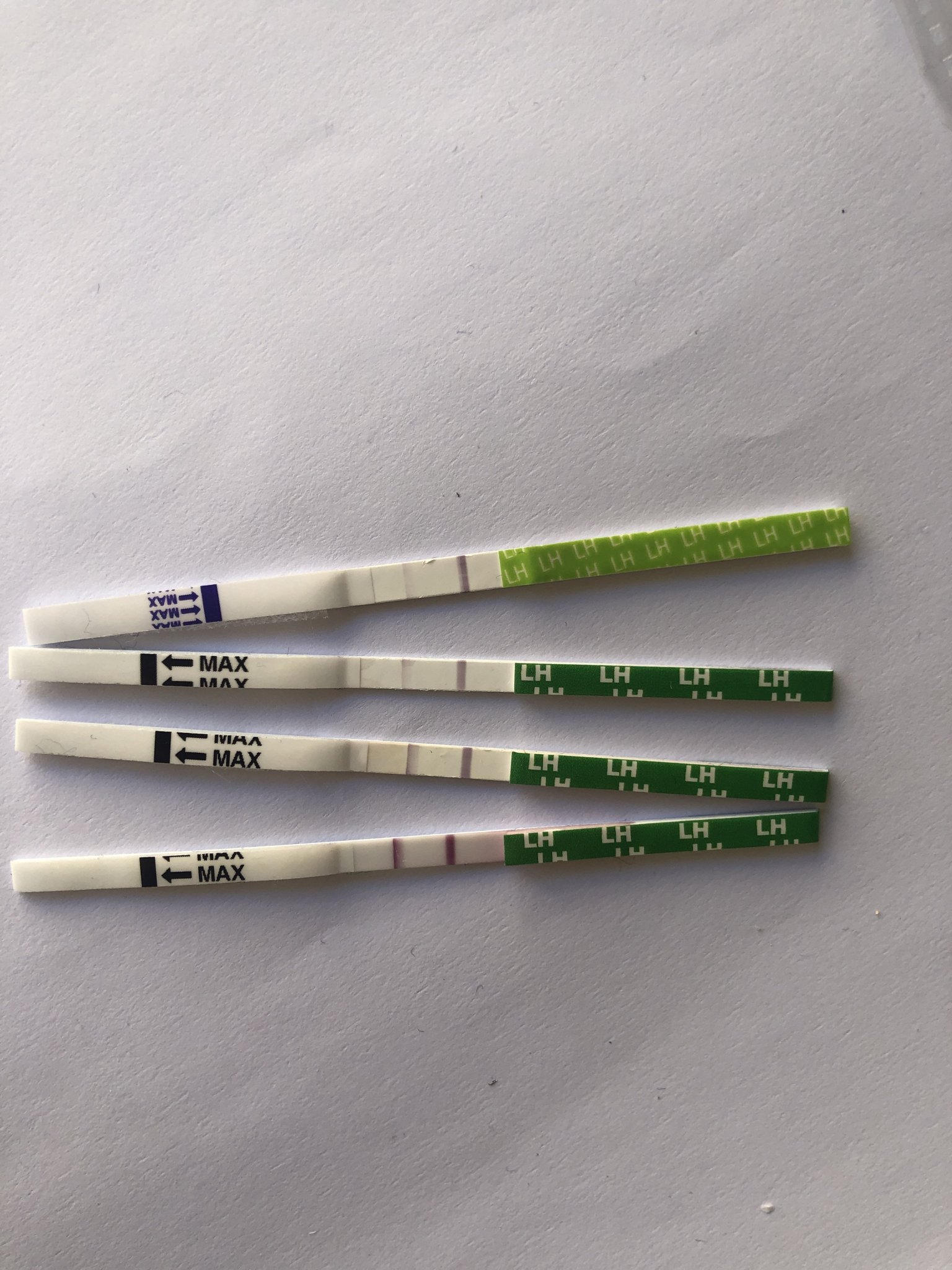 П. С. Откакто започнахме опитите цикъла ми стана нередовен. Всеки месец се удалжаваше с по 5-10 дни достигайки до дължина от 57 дни... Правим опити от година. Ходили сме при специалист според, който всичко е наред и при двама ни... Прикачам снимка. Леко избледняха, но при отчитане по времето описано в листовката си бяха много ярки всички