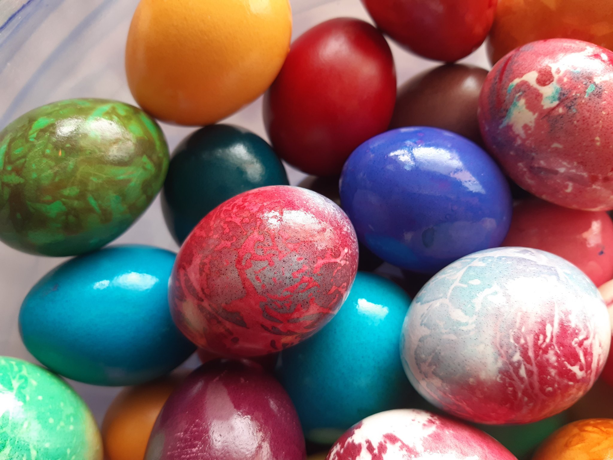 Бои имах изостанали от миналата година. Оказаха се много хубави. Червеното яйце е наистина червено.