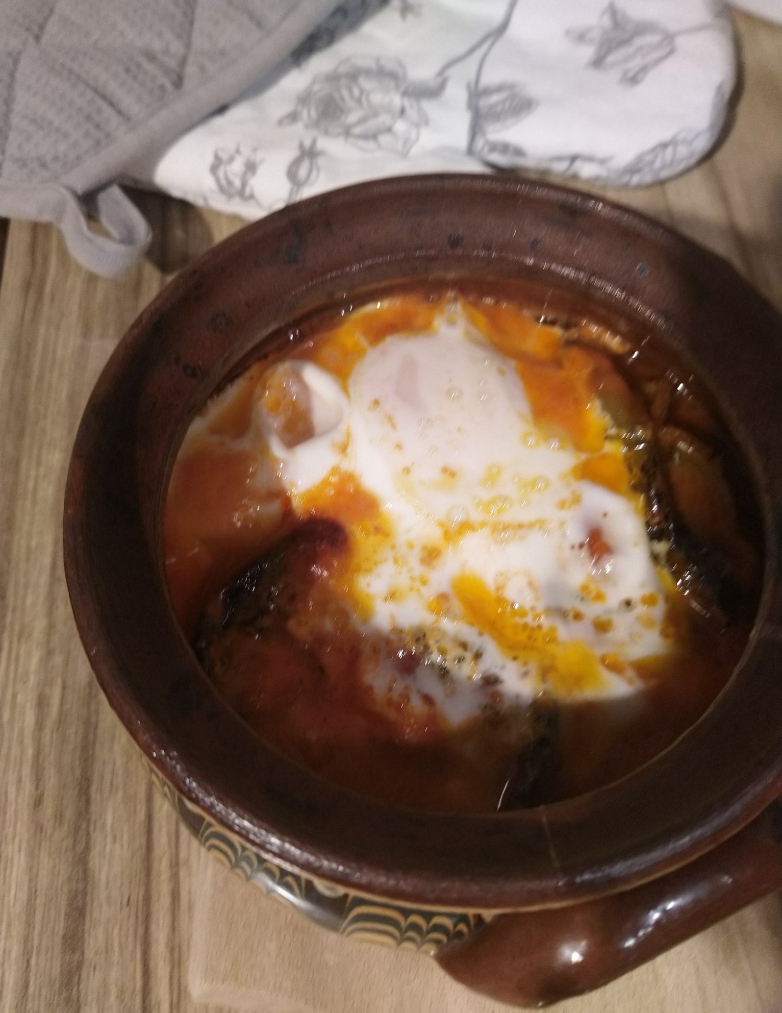 Снощи месото беше от буркан, чушките и доматите също, за по- неангажиращо беше пъхнато във фурната (ама пак беше вкусно).