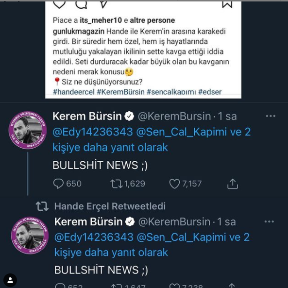 Ето отговора на Керем по повод тази фейк новина.  А той е BULLSHIT NEWS  или преведено ГЛУПАВИ НОВИНИ   допълнен с една усмивка.