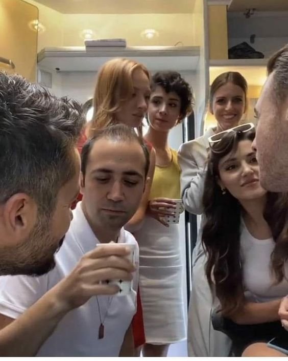 Момичета, Еда и Серкан не изглеждат хепи на снимката, защото това са всъщност Керем и Ханде. Керем се оплаква, че Ханде е натежала и сега трудно я носи. А тя му се обяснява, че той е виновен, като готви толкова вкусно... Семейни дразги общо взето. 😅😅😅
