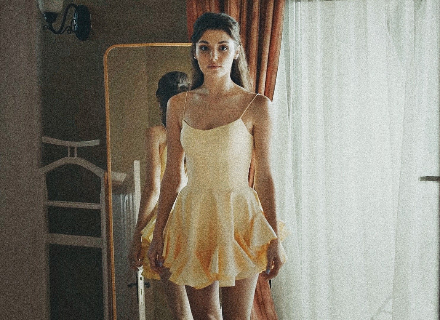 Да, май я дари. Иначе много си приличат двете рокли, цвета е същия, горната част е същата, ама полата е различна, къдричките на едната са по-къдрави май.