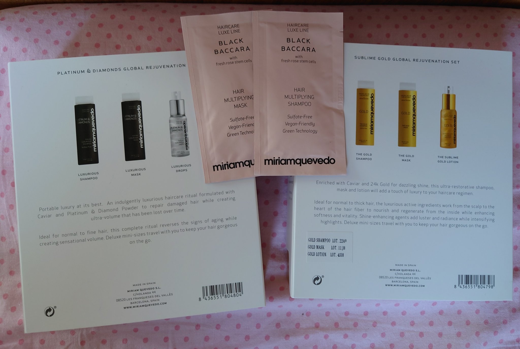На мен ми пристигнаха сетчетата на Miriam Quevedo. Нямам търпение да ги пробвам. Пуснали са ми мострички и на розовите Black Baccara, серията за която някой разпитваше. Шампоаните пише, че се държат да подействат м/у 2-5 мин. А маските се нанасят и на скалпа. Това ми се струва доста интригуващо. Ще споделя след време за действието. Със спрейчетата може и да не се разбера, на мен ми утежняват такива продукти обикновенно.