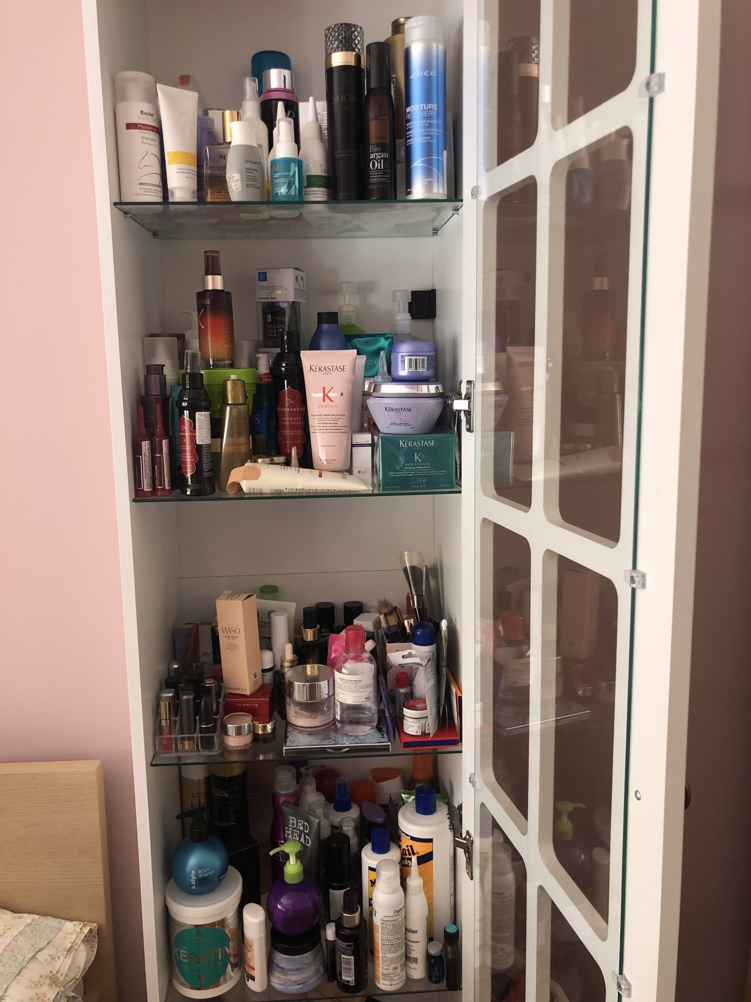 Измих с Joico Moisture  Surge, после сложих маска кафявата капачка на марокан, като финиши сложих термото на керастаз за блондинки, новият спрей против разплитане на маракеш който не ми се стори достатъчно ходратиращ затова опръсках хубаво и със спреят на Moroccanoil color complete, после добавих олио K-pak joico и нощният серум на керастаз.
