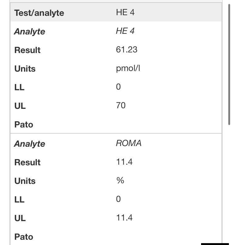 Притеснява ни, че HE4 е към горна граница, а ROMA е на границата. Мислите ли, че това говори за нещо опасно и някой сблъсквал ли се е с такава ситуация?