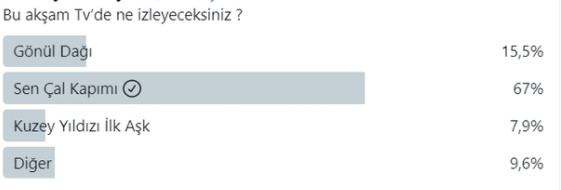 Една от агенциите измерваща рейтингите в Турция е пуснала анкета с въпрос: "Какво ще гледате по телевизията тази вечер?"