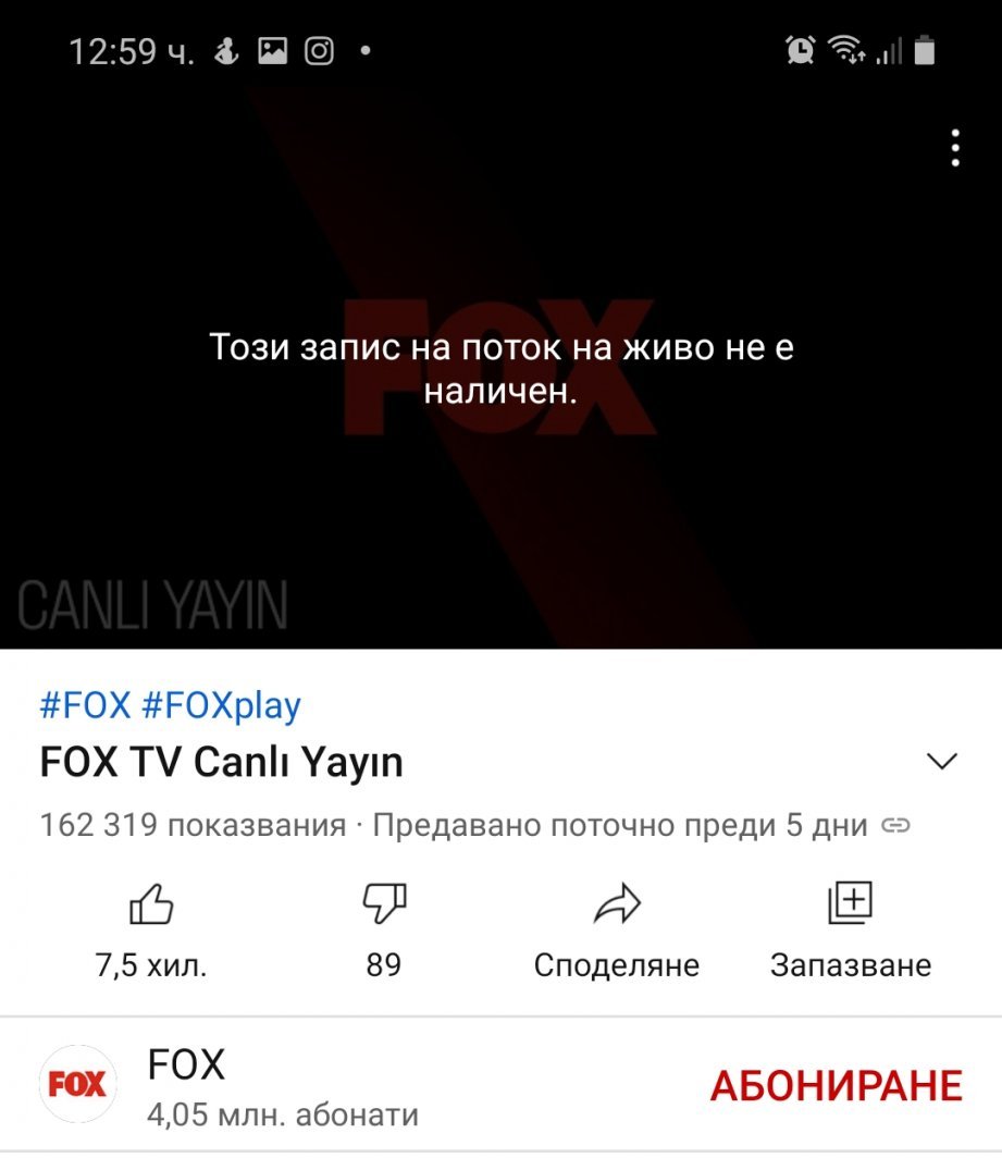От сега ми забива fox в YouTube,a не знам какво ще става довечера.