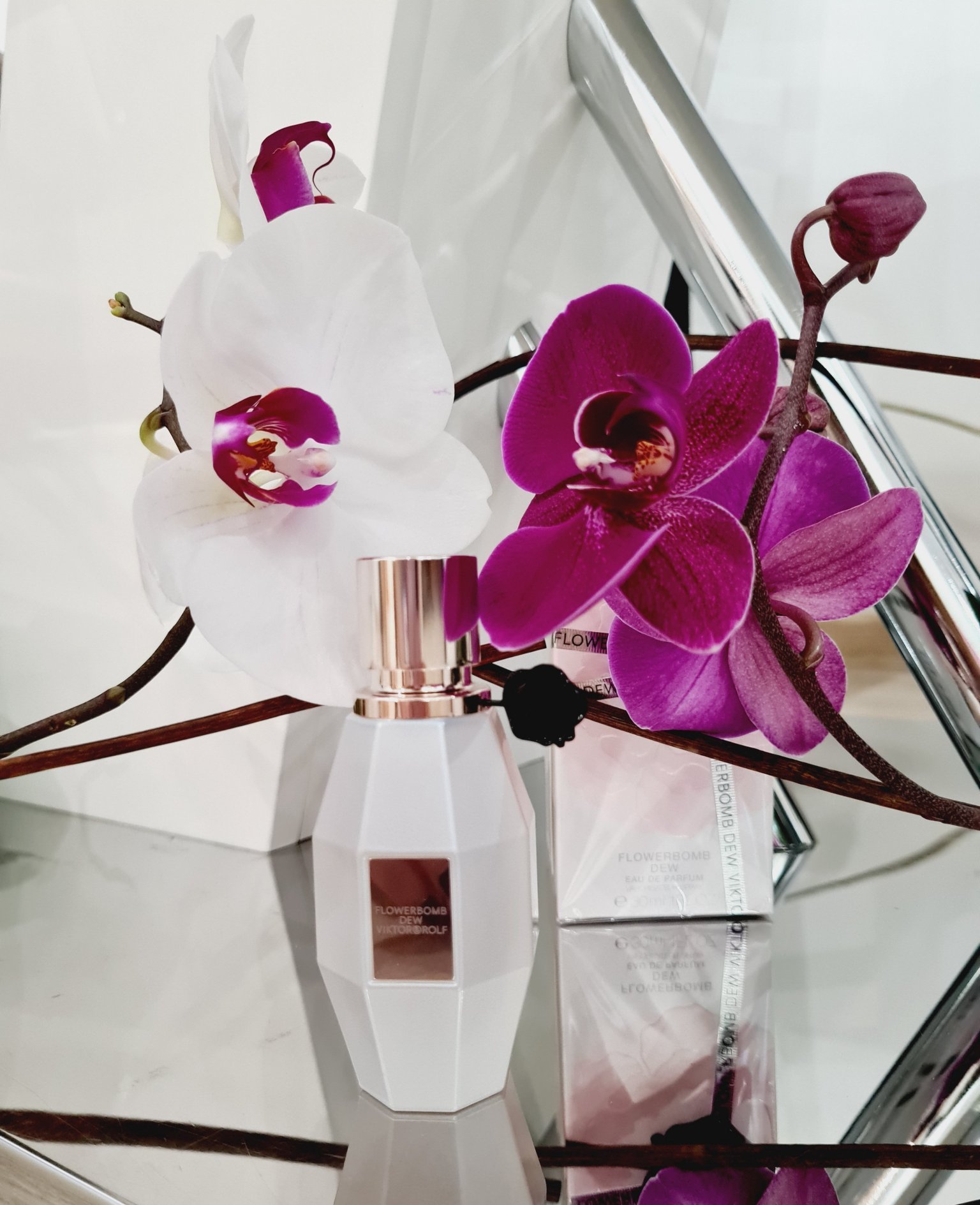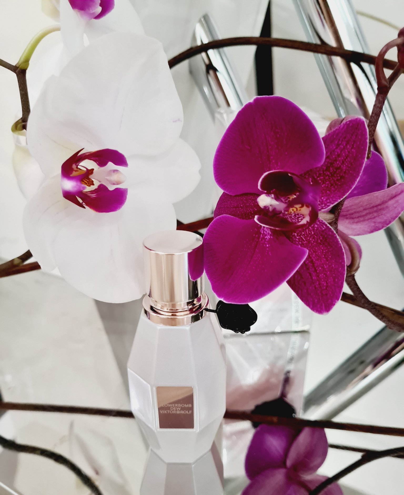 Вече имам V&R в колекцията си, мн съм радостна.  Flowerbomb Dew e спокойствие за носа ми, хубава линейна ванилия с целувка от ирис, без интрига и сложности. Наистина е пудрен, но не като пудрата на разорената аристократката на Радика (ти ли я описа мн яко), а като хайлайтър от нова дизайнерска колекция. Няма мн трайност, затова е перфектен за чантата. Моите чанти са малки и липсва място за парфюми, но ще го оставя на работа. Шишенцето е като седеф, голяма красота.