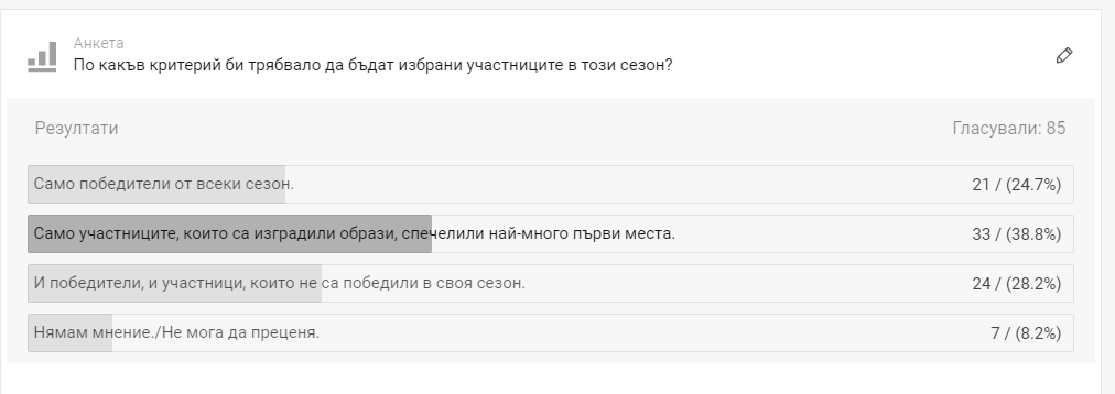 Е, да, това имах предвид, макар че нещо не съм го дописала. Но все пак ще е хубаво да имаме по-голямо разнообразие от победители (заслужили, разбира се), ще е по-интересно Simple Smile
