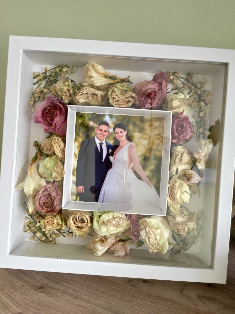 А ако е за вграждането на букета - то е от типа направи си сам. Използва се една конкретна рамка от Икеа и пистолет с топло лепило. Прикачвам снимка на моята в скрит текст, очаквах да стане по-добре, но съм малко вързана в ръцете.