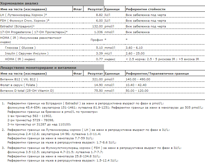 На следващия 3 ден от цикъла повторих тези, вкл. и хормоните на ЩЖ (предните бяха в Кандиларов), а тези са в Цибалаб:
