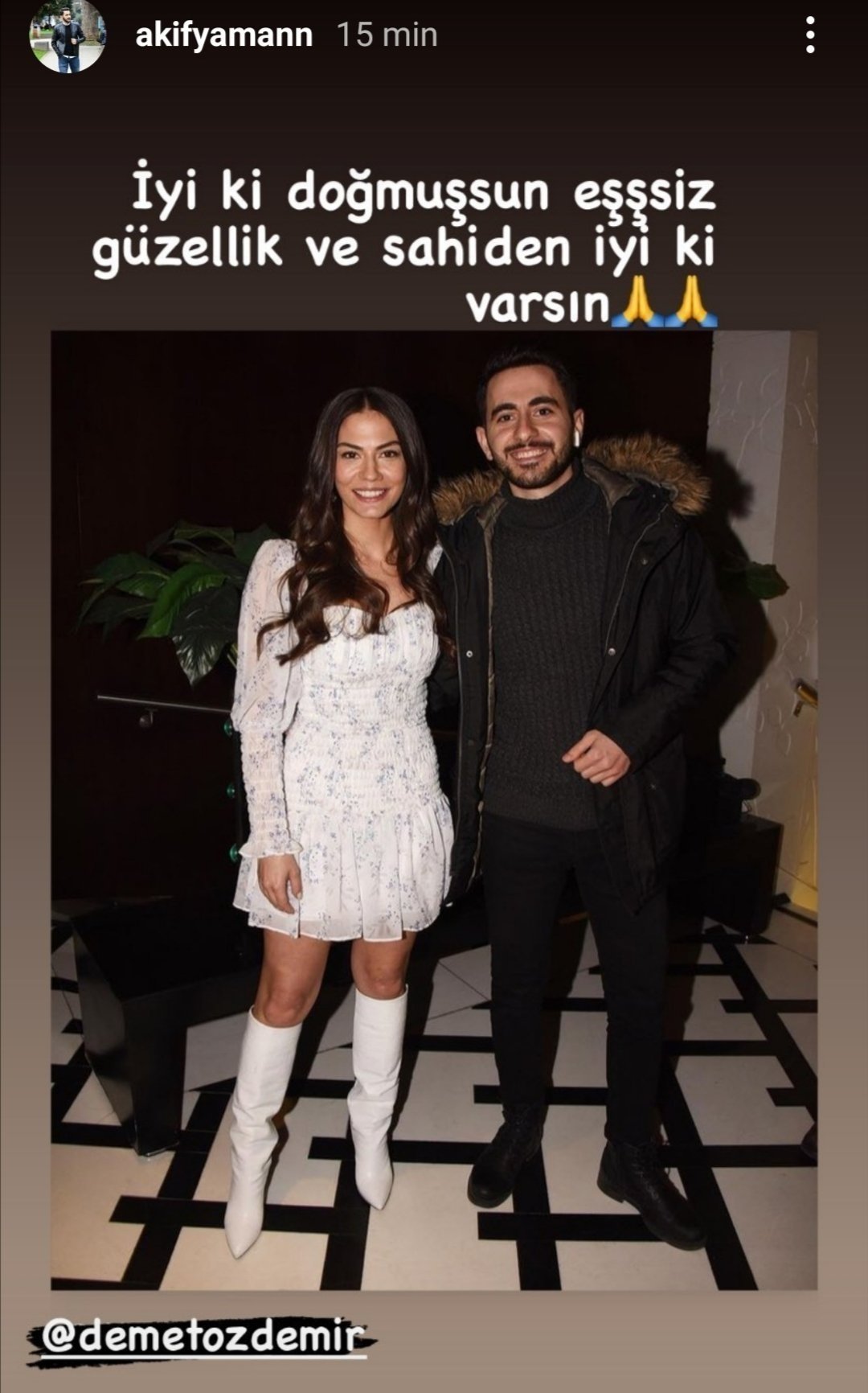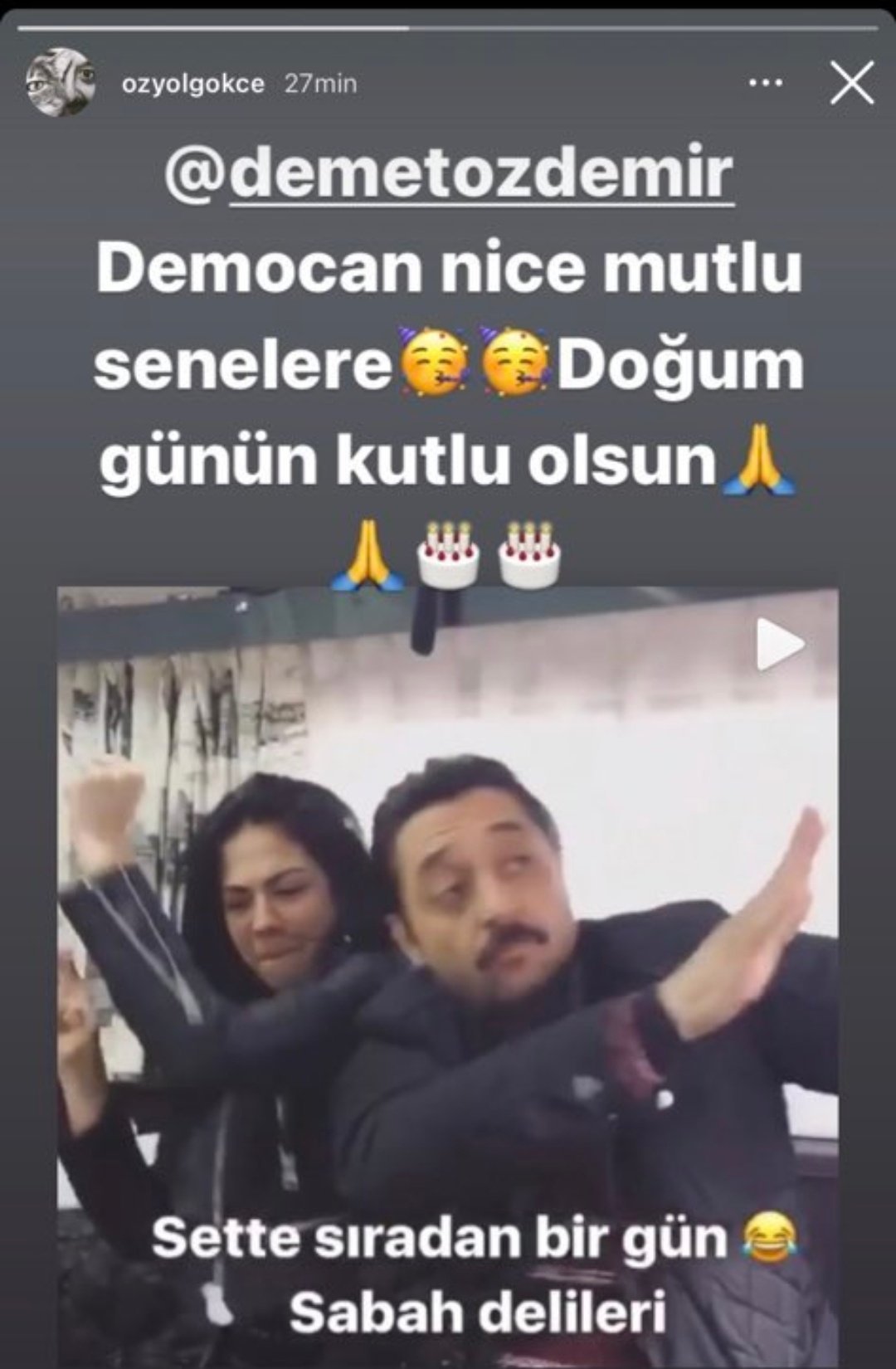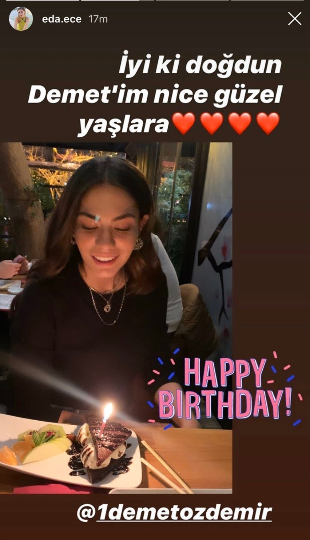 Честитки от екранните ѝ майки Сенан (Нермин), Зухал (Сакине), Инджи (Бенал), оператора Бурак, фотографа Мортеза, Башак и Севинч от Птичката, колегите от No. 309 - Сумру, Фатма, Фатих (д-р Онур) и Гьокче (Куртулуш), фризьорът Ондер, репортерът Акиф, Еда Едже, другата сестра Зенгин - Бану и т.н., и т.н. Wear Crown