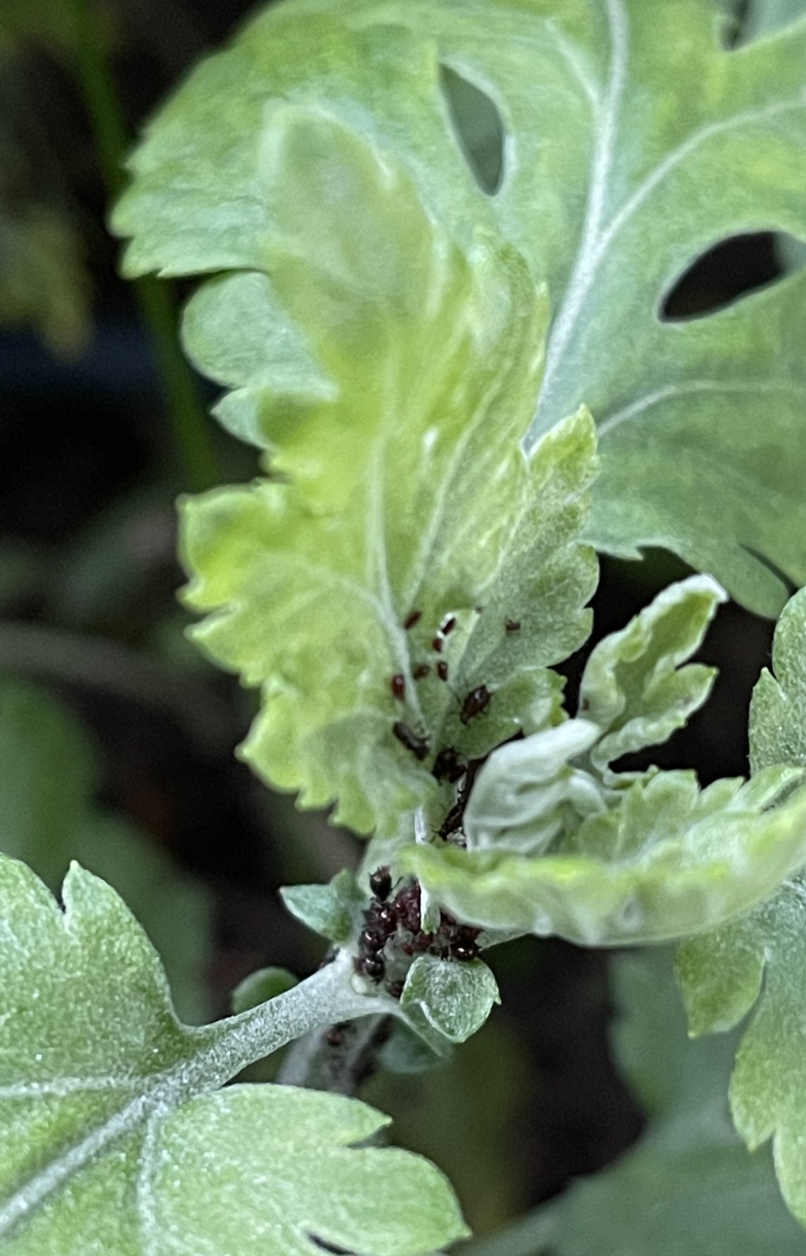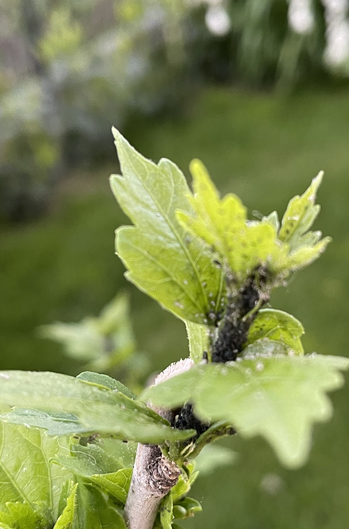 Това са черни листни въшки. Пръскам ги със смес от 1сл олио + 1сл течен сапун (разбъркани добре) и смесени добре с 4л вода. До следващия ден са измрели.