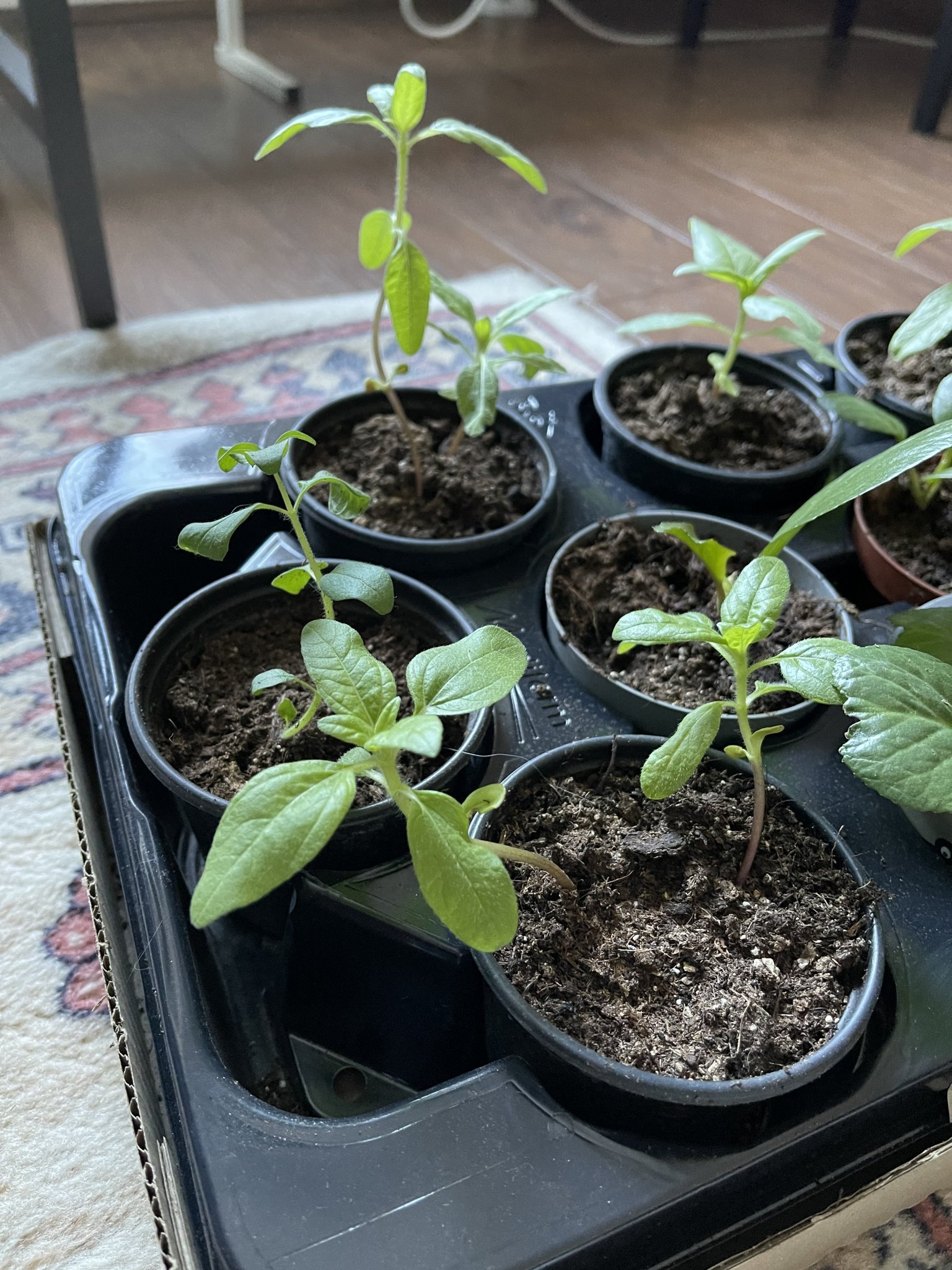 Станали са по 10тина см. Тагетис, слънчоглед, петунии. Може и някоя циния да е станала.