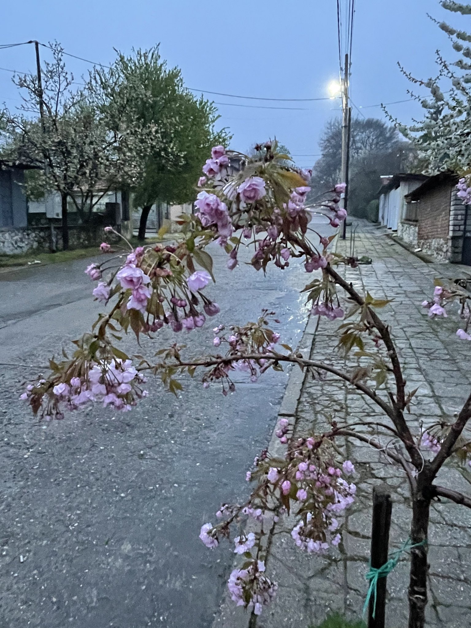 Розовото е впечатляващо нали Simple Smile вероятно е японска вишна. Не е последното. Белите предполагам масово са череши. Дал Бог череши в Белащица! Ето го дървото на розовото Simple Smile Малко дръвче е (още)