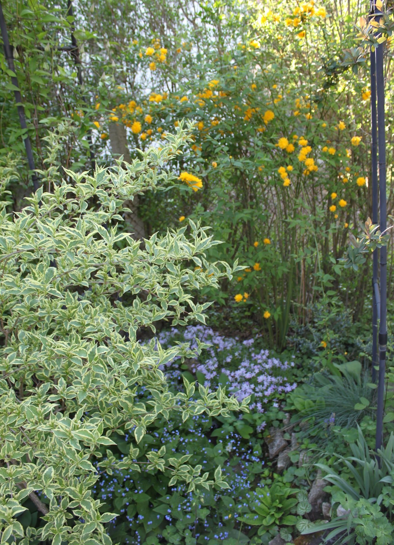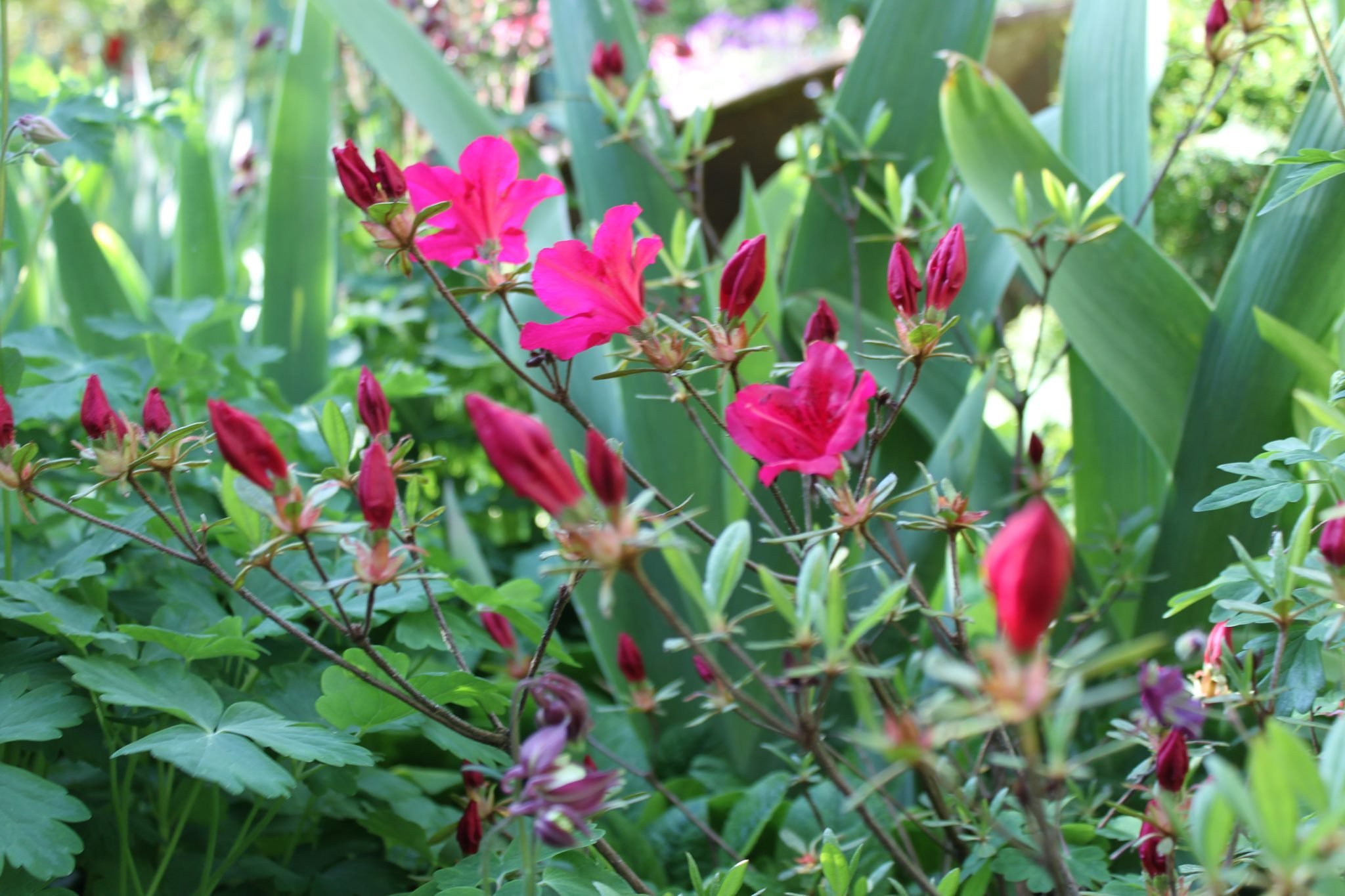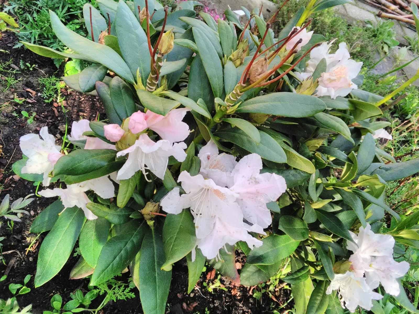 Не помня в коя тема обсъждахме рододендроните. Този от първата снимка е на слънце и вятър, винаги цъфти първи, но листата му не показват цветущо състояние. Вторият с ужасно размазана снимка е от същия вид, на сянка. Още е на пъпки, но листата са тъмно зелени, изпънати и гладки, както трябва да бъде.