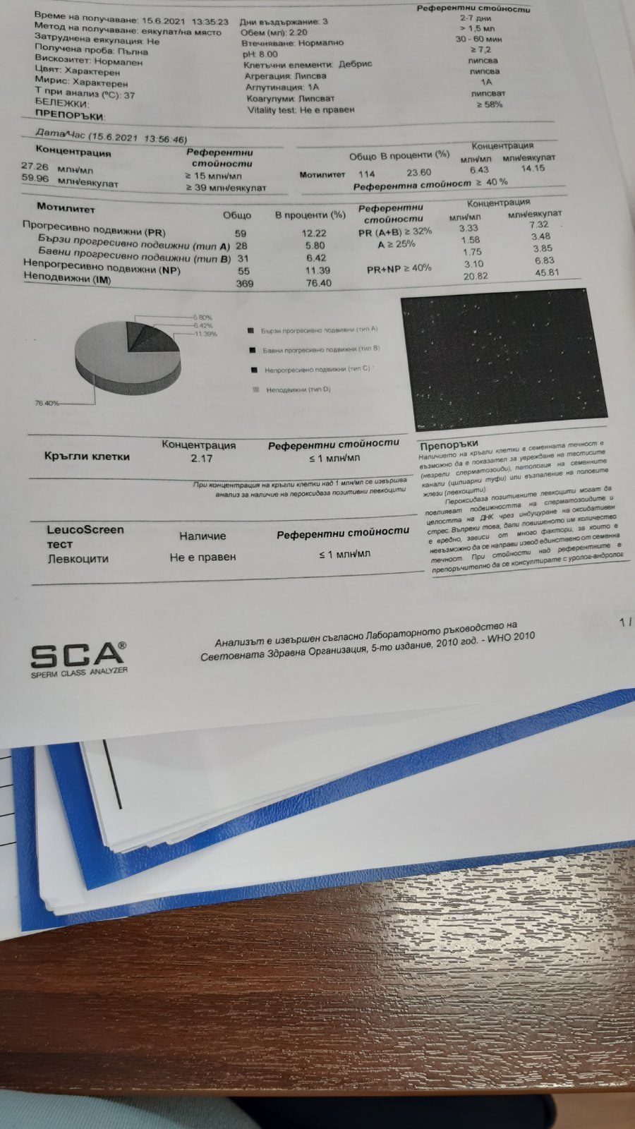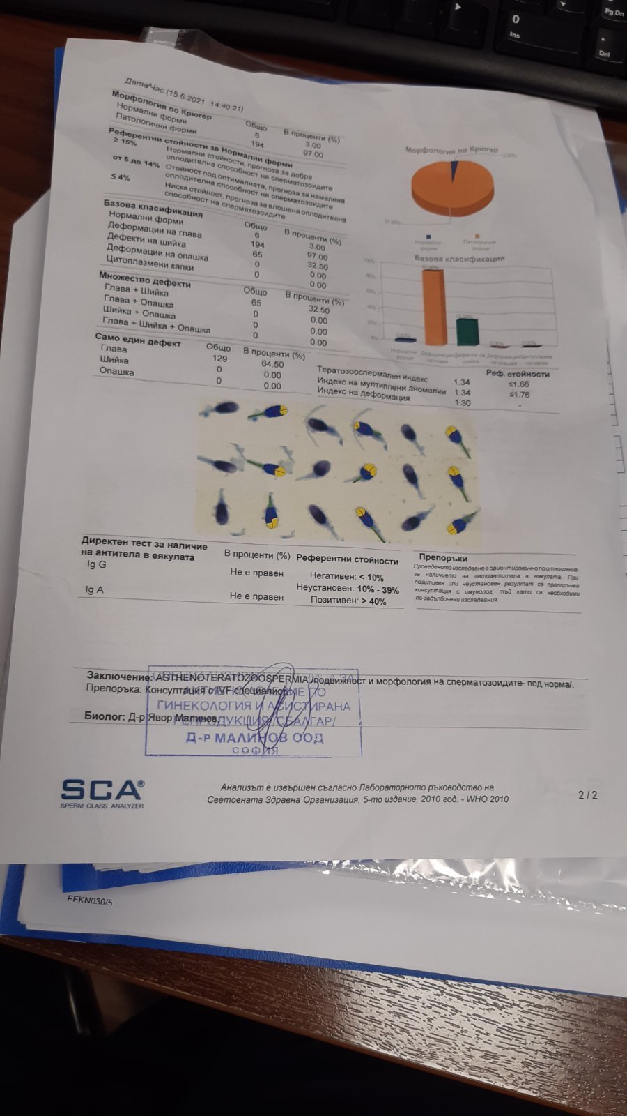 Излязоха резултатите на ММ от СГ правена днес. Нормозооспермия. Бързо подвижни - 22%
