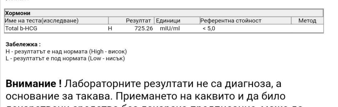 Здравейте! Последния ми цикъл беше на 07.04.2021г., направих си доста тестове след закъснението и всички са положителни, пуснах кръвен тест какво мислите за резултата