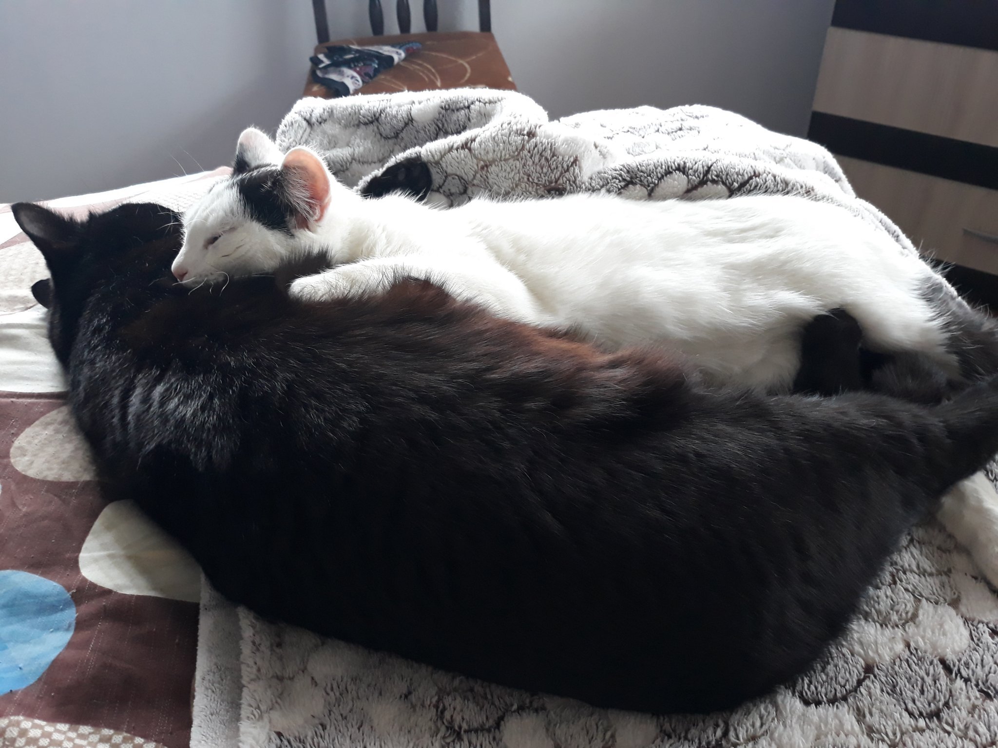Гледам го, пред мен е и ми е трудно "да го разплета" 🤣 , задните крачета- под главата, предните- при опашката