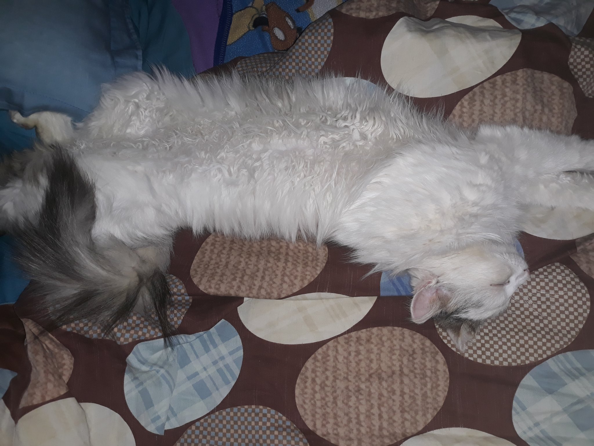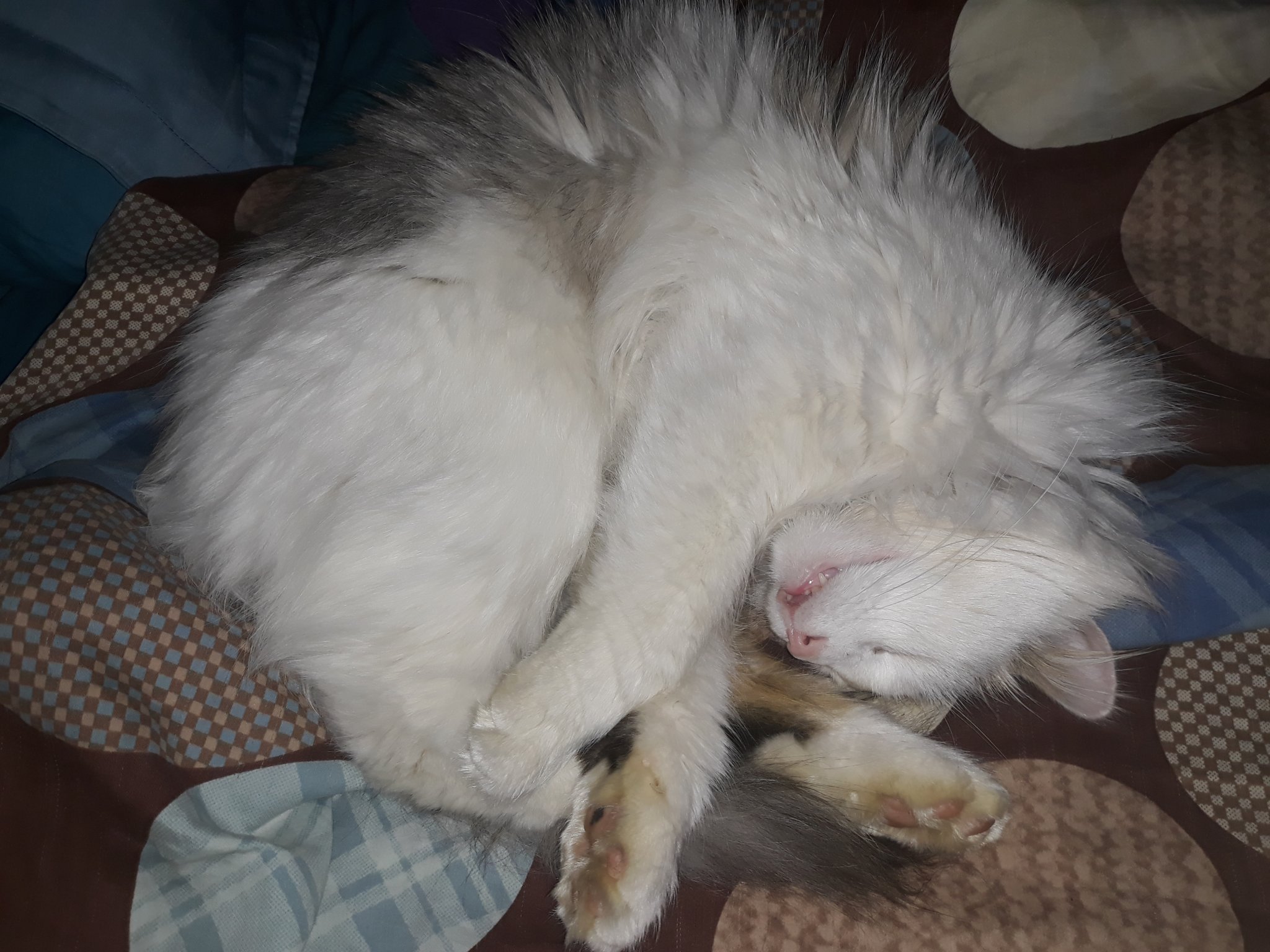ей така тази сутрин - по цяла нощ го пазя, да не го сритам. Спи в краката ми, но в края на леглото само върху чаршафа , не понася да го завивам или да лежи върху завивката Wink