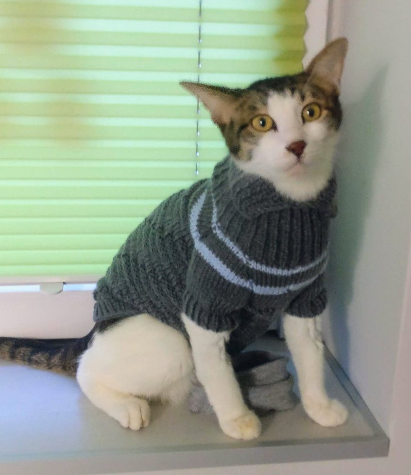 Този красавец - Феликс, ни конкурира по уши, но определено ни бие с това пуловерче. Joy Сладурчо.Kissing Heart