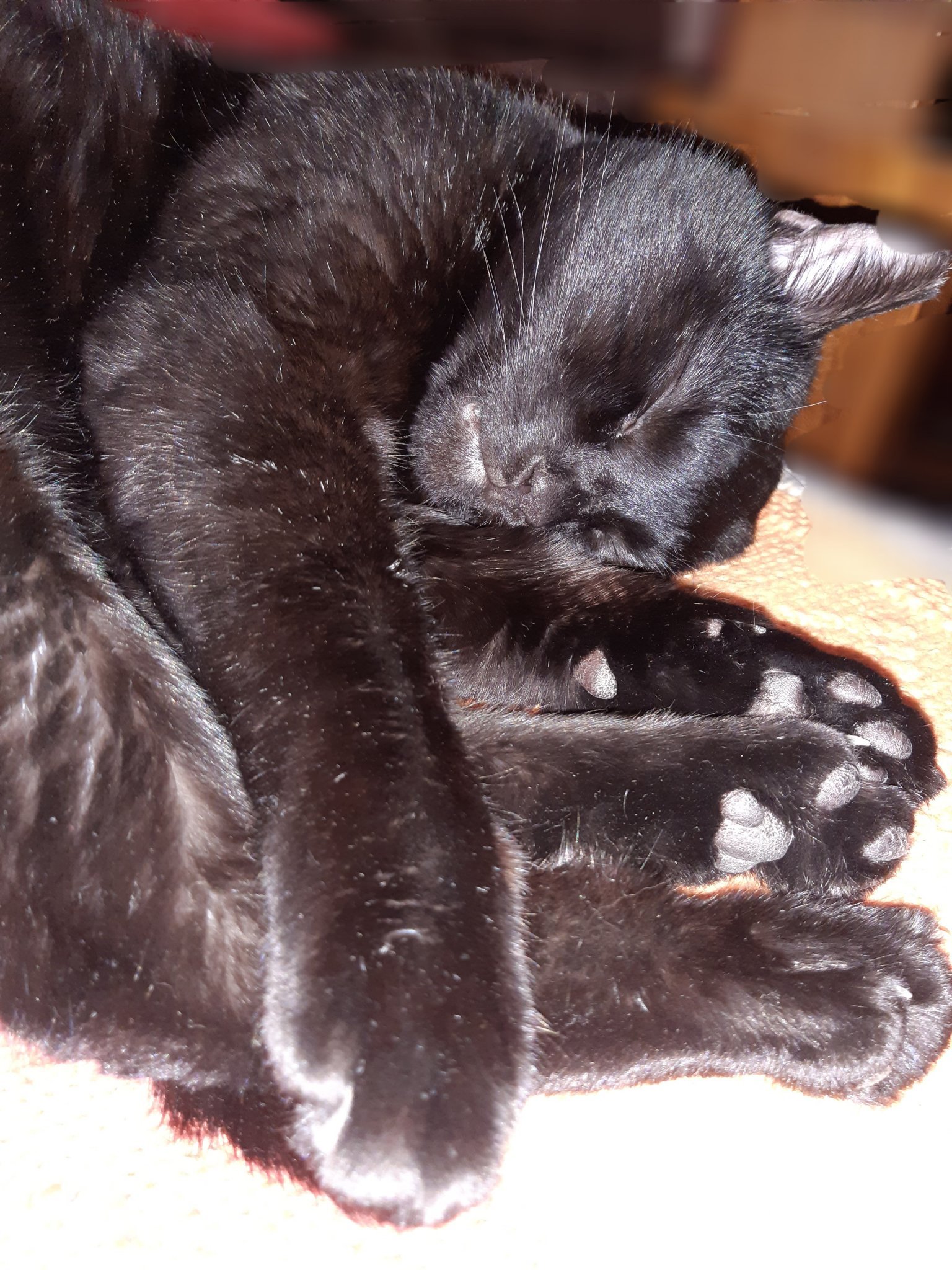 Нашата Ая я взехме преди 5 г. от улицата. Вет каза, че е на около 2 години. Аз даже не я исках. А тя е и с алергия и се четеше постоянно и си правеше рани. Избързах, преди да свикне с нас и я кастрирах на втората седмица. На другия ден раната се отвори и я водихме наново да я шият. Давахме и антибиотици, стоя сума ти време с яка, заради чесането пак лекарства и т.н. В началото изобщо не идваше при нас. Не се е крила, но стоеше предимно в кухнята на любимия и вече скъсан фотьойл, на който бях постлала одеало. И така около 2 месеца. Една нощ усетих, че дойде сама и легна в краката ми. И от тогава стана най-лигавата и гальовна и добричка котка на света. Само ме чака да седна или легна някъде и ведната се е настанила върху мен и почва да мърка като трактор. Но иначе, като чуе някой да се качва по стълбите, застава пред вратата и започва неистово да мяуче. Същата история е на балкона - като види да минава някой отдолу, започва да му се оплаква, колко е нещастна, че е затворена а другите са свободни🤣. Мисълта ми е, че не свикна лесно в къщи, но все пак свикна. Понякога, като отворим вратата успява да се промъкне покрай нас. Като стигне до първия етаж, ние сме на втория, я хваща шубето, прави обратен завой и на бегом се прибира у нас.