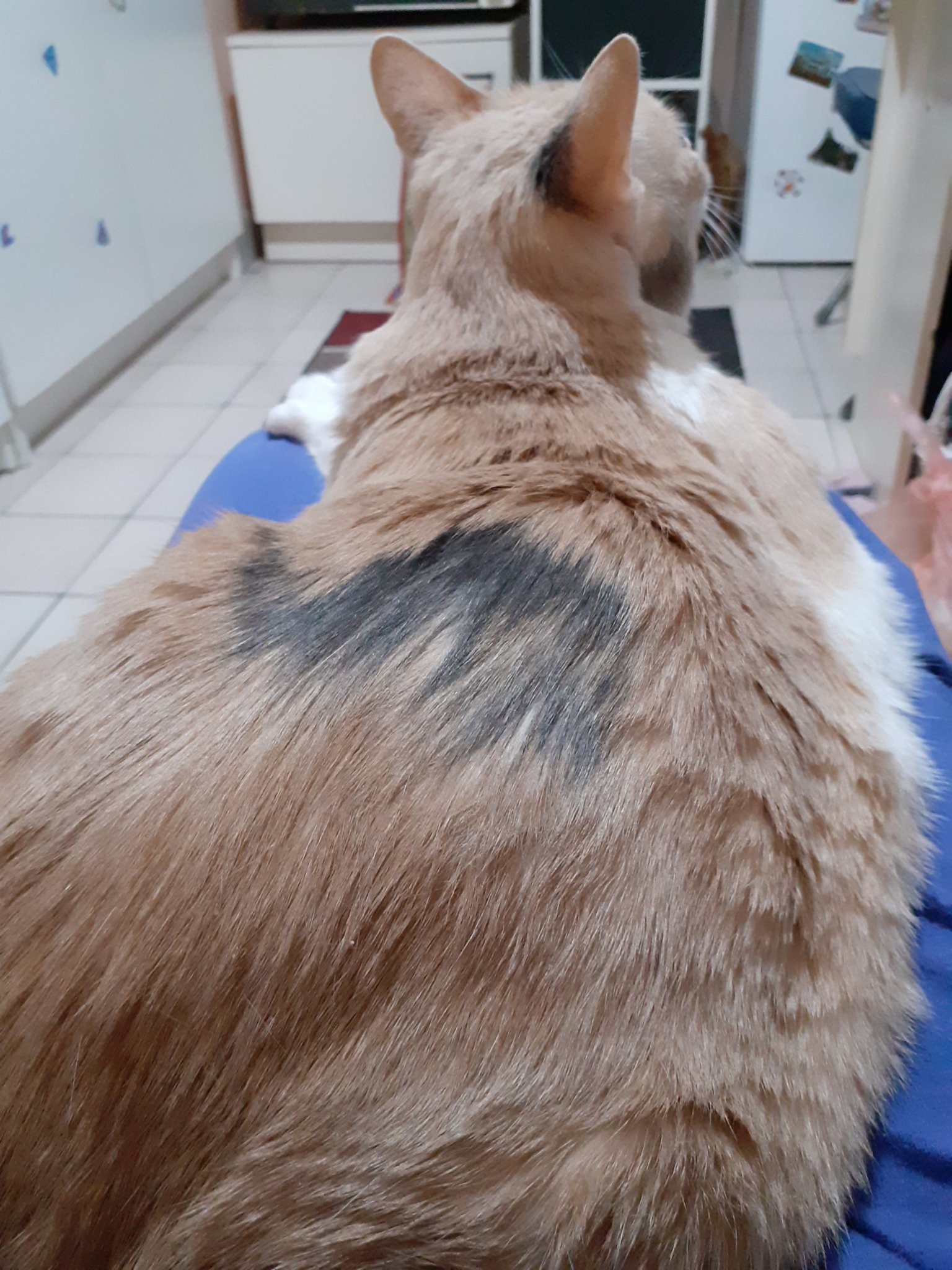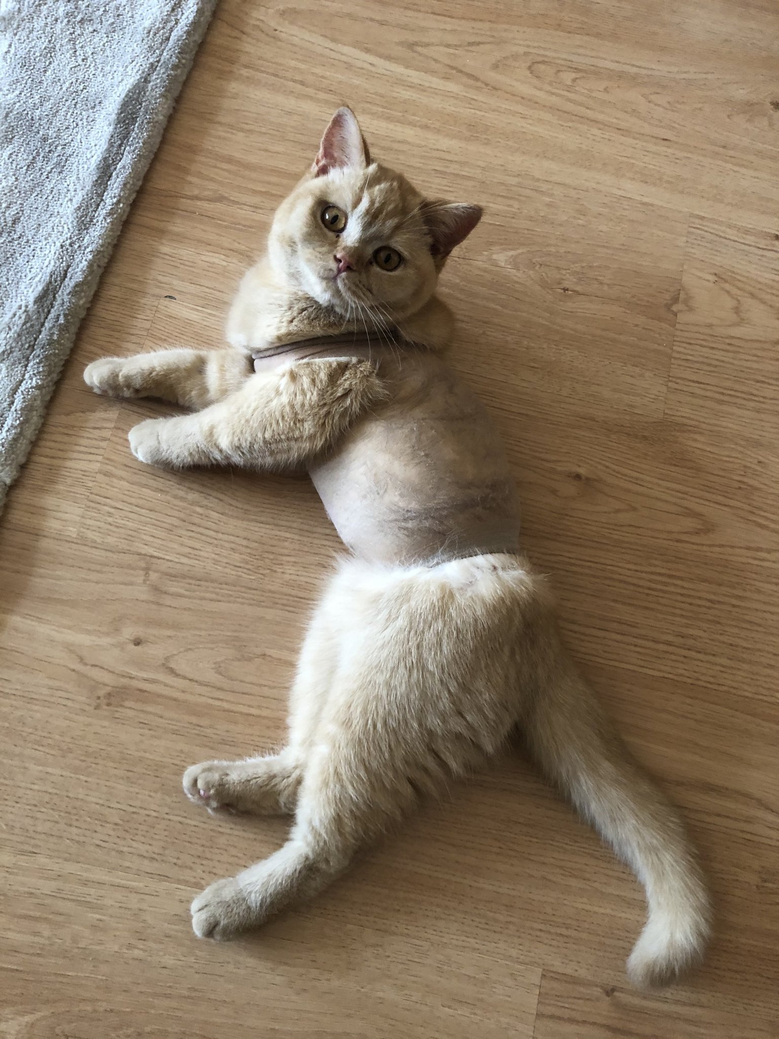 Ние махнахме конуса сутринта. Раната е с дебела коричка и вече много се в събрала . Разбира се , Прасковка се активира да се къпе (5 дена не го е правила), затова сложихме един тънък чорап от ликра 😅 Тича като луда, усети свободата! Просто това кастриране се оказа малко предизвикателство. Слагам снимка с новия “тоалет”.